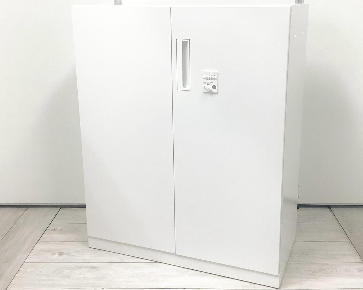 【収納物がひとめで分かる両開き戸タイプ!】■コクヨ(KOKUYO)製 エディア(EDIA)シリーズ 両開き書庫 ローキャビネット H1130㎜ ■天板・ベース付 ■ホワイト ■シリンダー錠【IB】