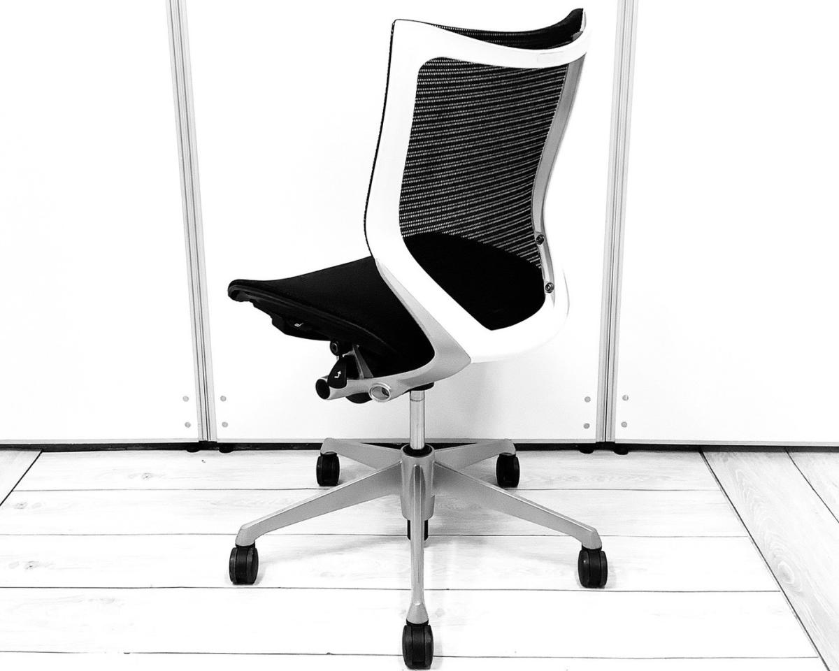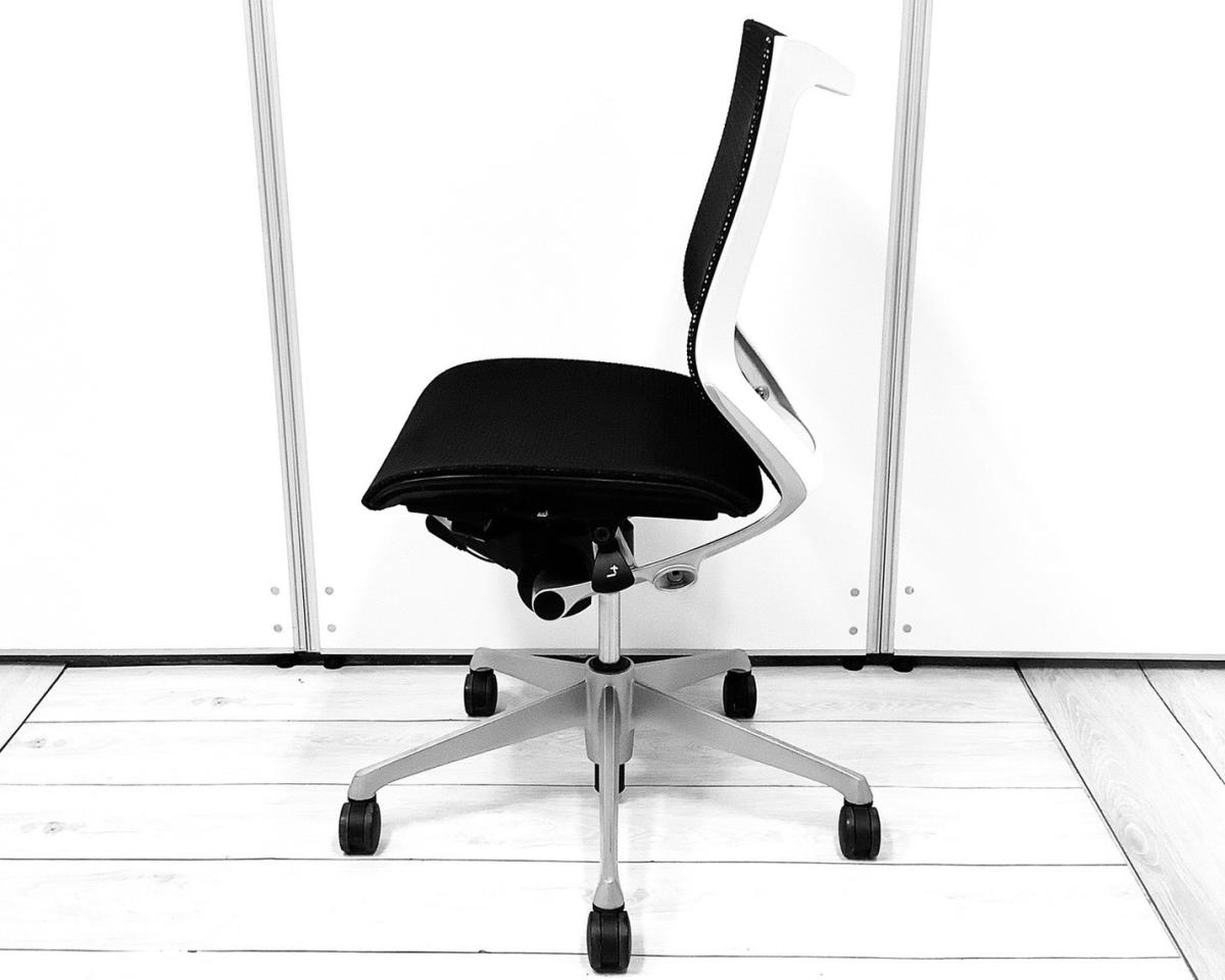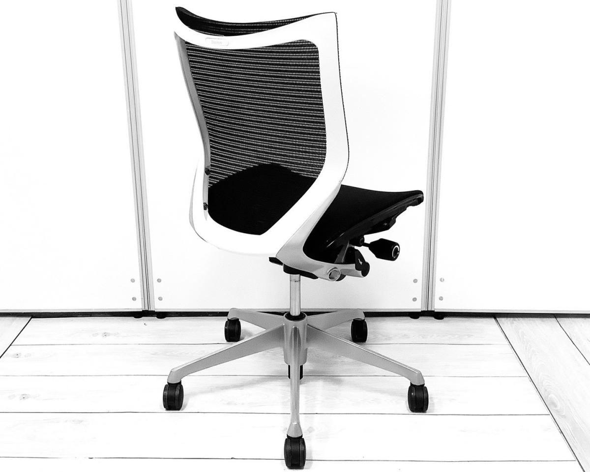 ■オカムラ製 肘無しバロンチェア ローバック ブラック ホワイトフレーム