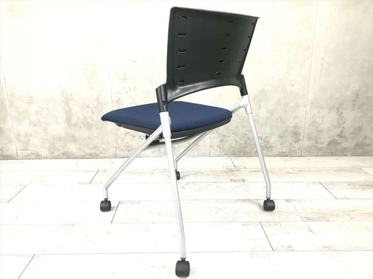 【セミナーや会議用にオススメ!平行ネスティングで省スペース化!】■イトーキ製 マノス ネスティングチェア ■背パッド付 キャスター付き ■ネイビーブルー オフィスバスターズ心斎橋店 ロット在庫- 大阪心斎橋店