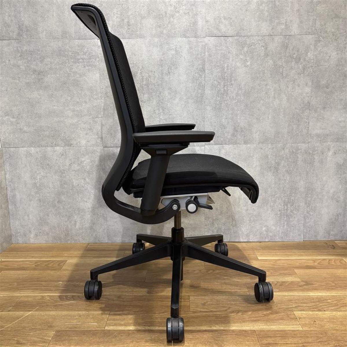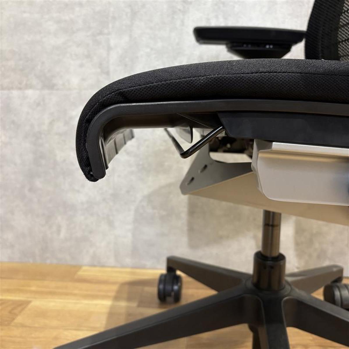 快適な座り心地に不可欠な調節機能である、上下昇降、座面の奥行き調整、リクライニングなどを備えており、操作もわかりやすく好評です。 特に、座面の奥行きは、座面下の左右に通った細いバーで調整でき、座ったままで軽やかに滑るように調整が可能です。 価格面では、新品では高めですが、中古は流通も多く、定価の3割前後の価格で高級チェアの座り心地を手に入れることができます!