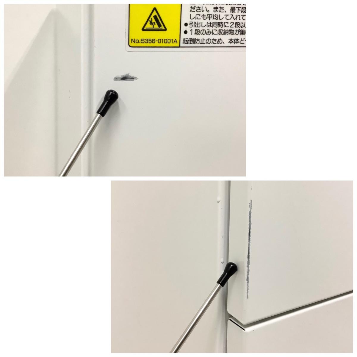 - 一部不具合ありそ引出の開閉不可、施錠不可、棚板無しといったの書庫の本来の効用を果たすための機能以外の一部が使用不可(例、扉、引出の開閉がしづらいなどがある。 )