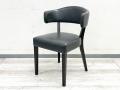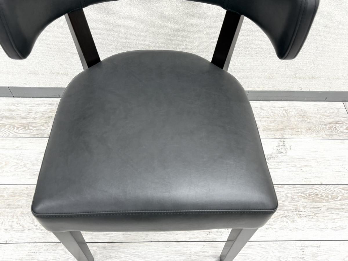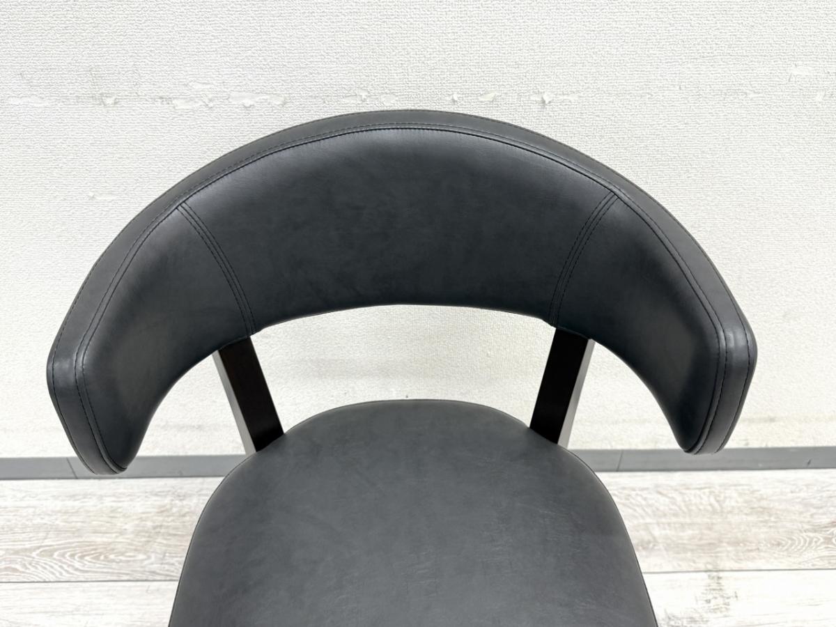 背もたれの包み込むような形状は座り心地だけでなく、空間の印象をやわらかく見せる効果があります。飲食店、オフィスの来客用、店舗什器など幅広く対応でき、レザー調で清掃しやすい点も高評価ポイントです。落ち着いたブラックと木脚の組み合わせは、シックな内装にも明るい内装にも合わせやすい万能デザインです。