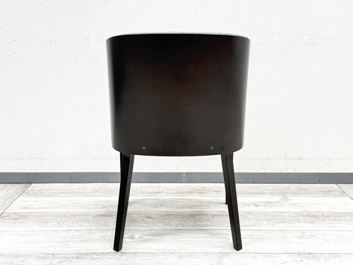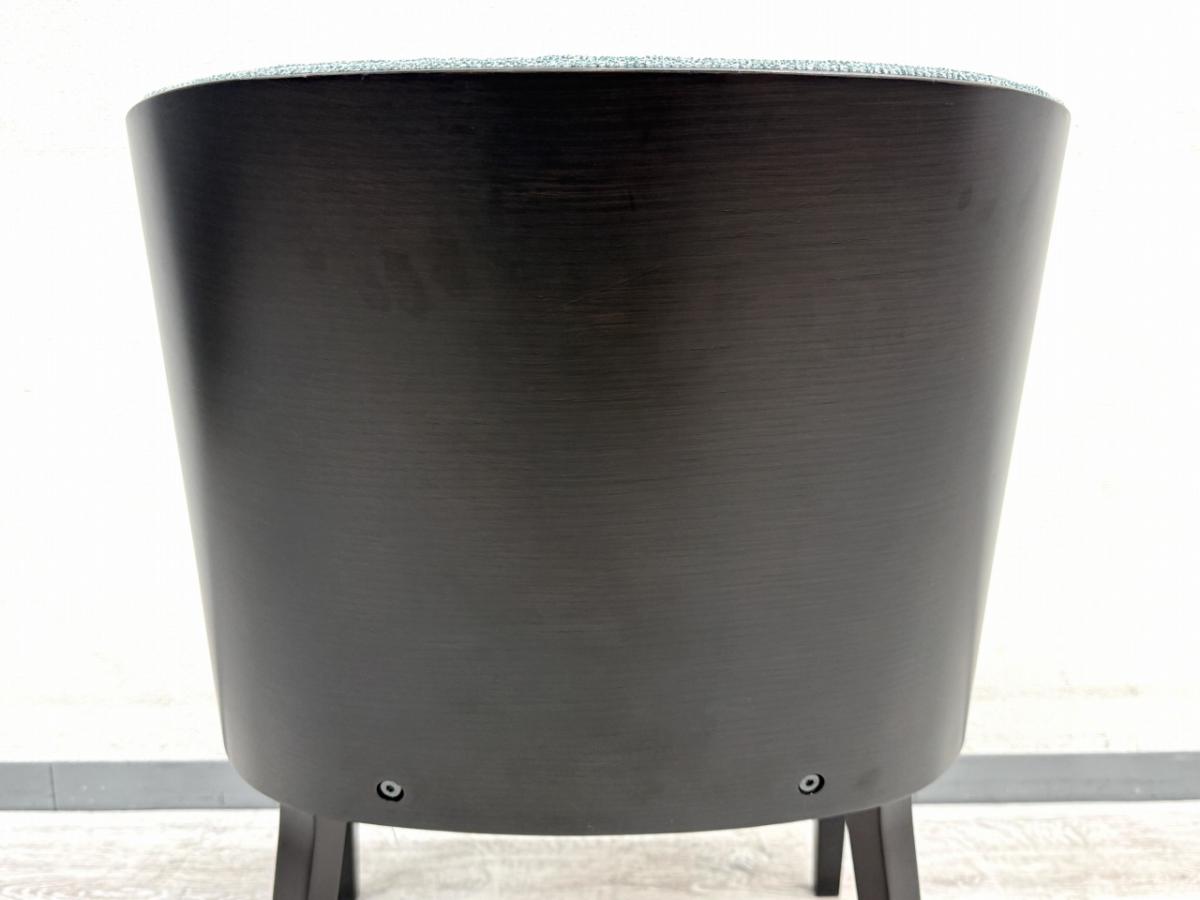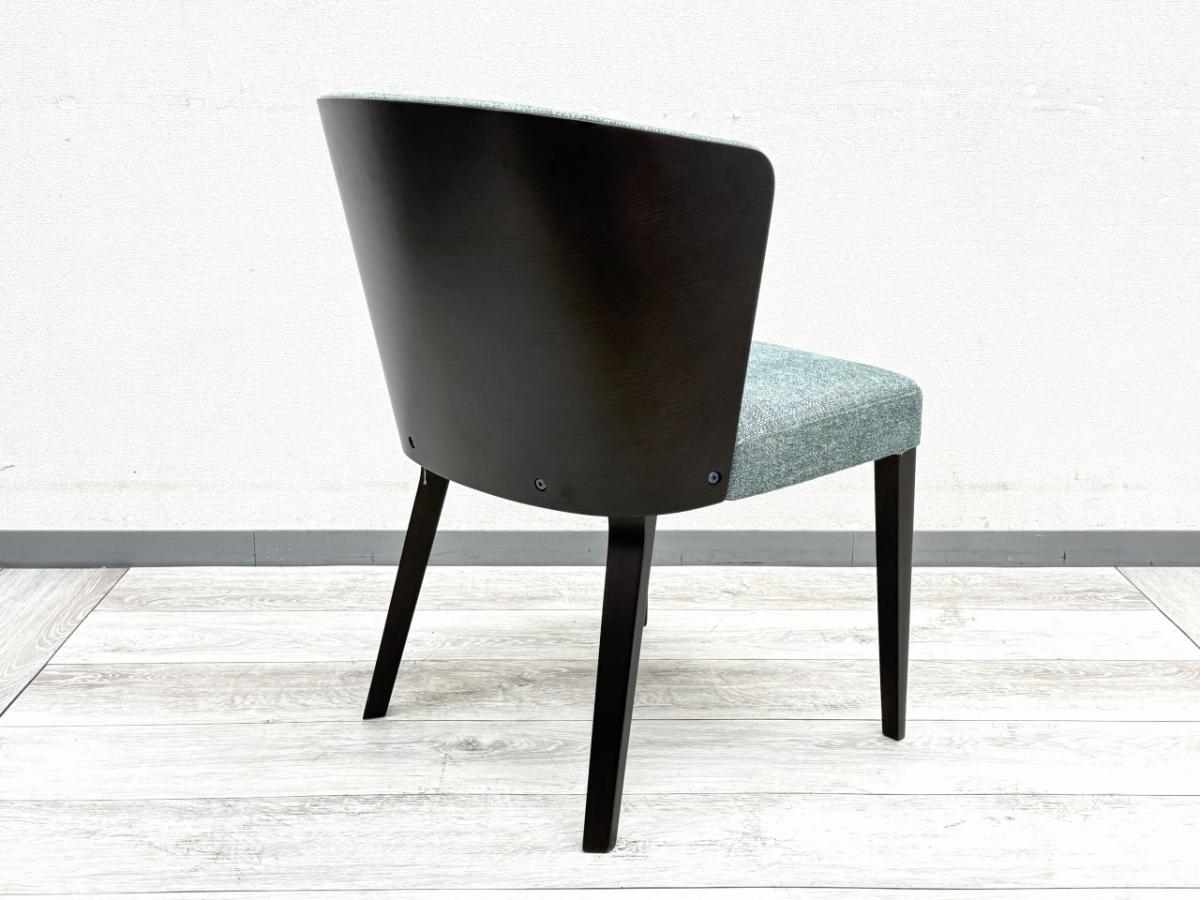 背面の木パネルが上質な印象を与え、飲食店やラウンジ、受付スペースなど「見せる椅子」としても使いやすい一脚です。ファブリックは手触りがよく、柔らかい色合いで空間に自然になじみます。スタンダードな4本脚構造は安定性が高く、業務用途でも使いやすい点が魅力です。使用感の少ないAランク相当のきれいな状態で、全体的に非常にコンディションの良い商品です。