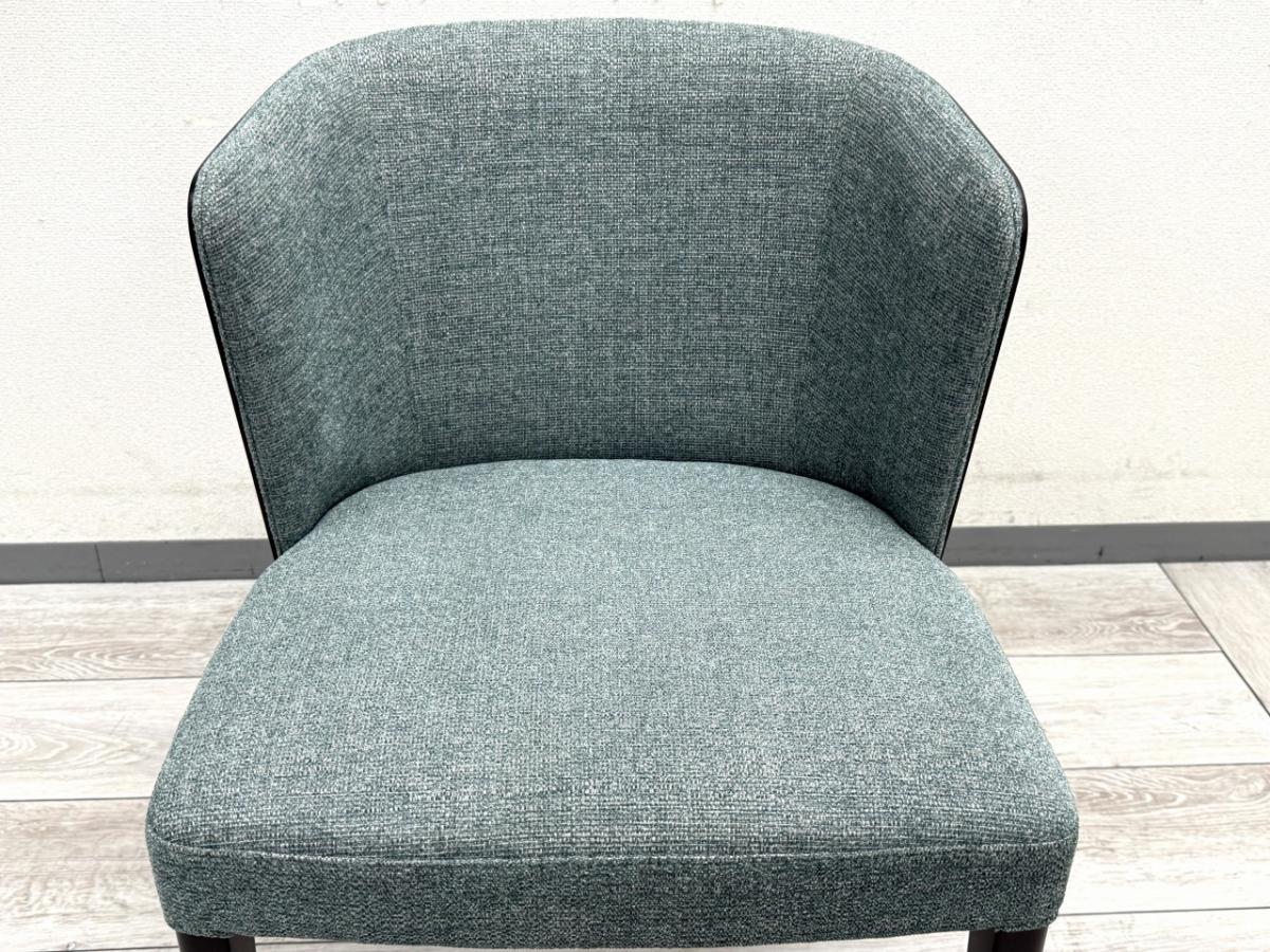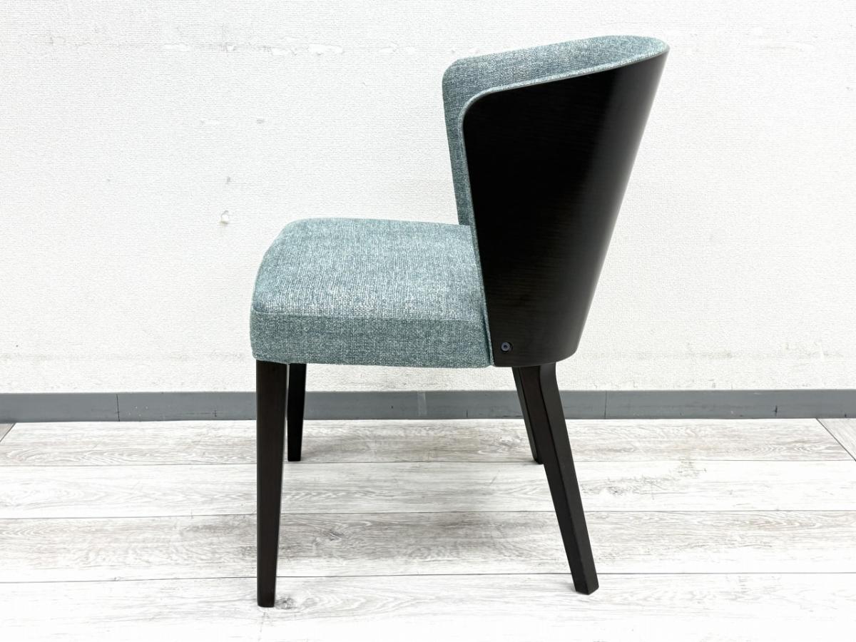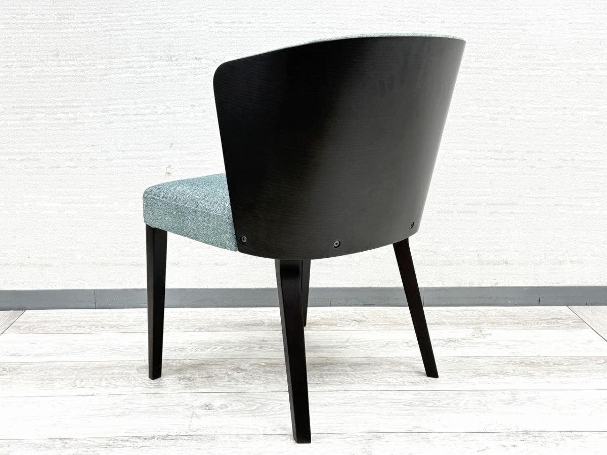 背面の木パネルが上質な印象を与え、飲食店やラウンジ、受付スペースなど「見せる椅子」としても使いやすい一脚です。ファブリックは手触りがよく、柔らかい色合いで空間に自然になじみます。スタンダードな4本脚構造は安定性が高く、業務用途でも使いやすい点が魅力です。使用感の少ないAランク相当のきれいな状態で、全体的に非常にコンディションの良い商品です。