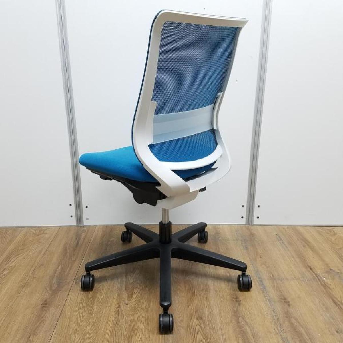 【入替セール】コクヨ ミトラシリーズ 肘無しチェア 張地:ターコイズブルー フレーム:ホワイト 快適な背メッシュ ランバーサポート付き