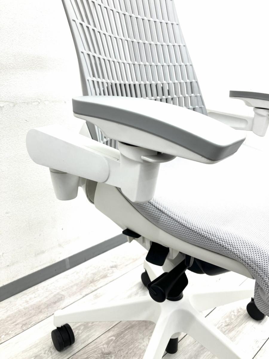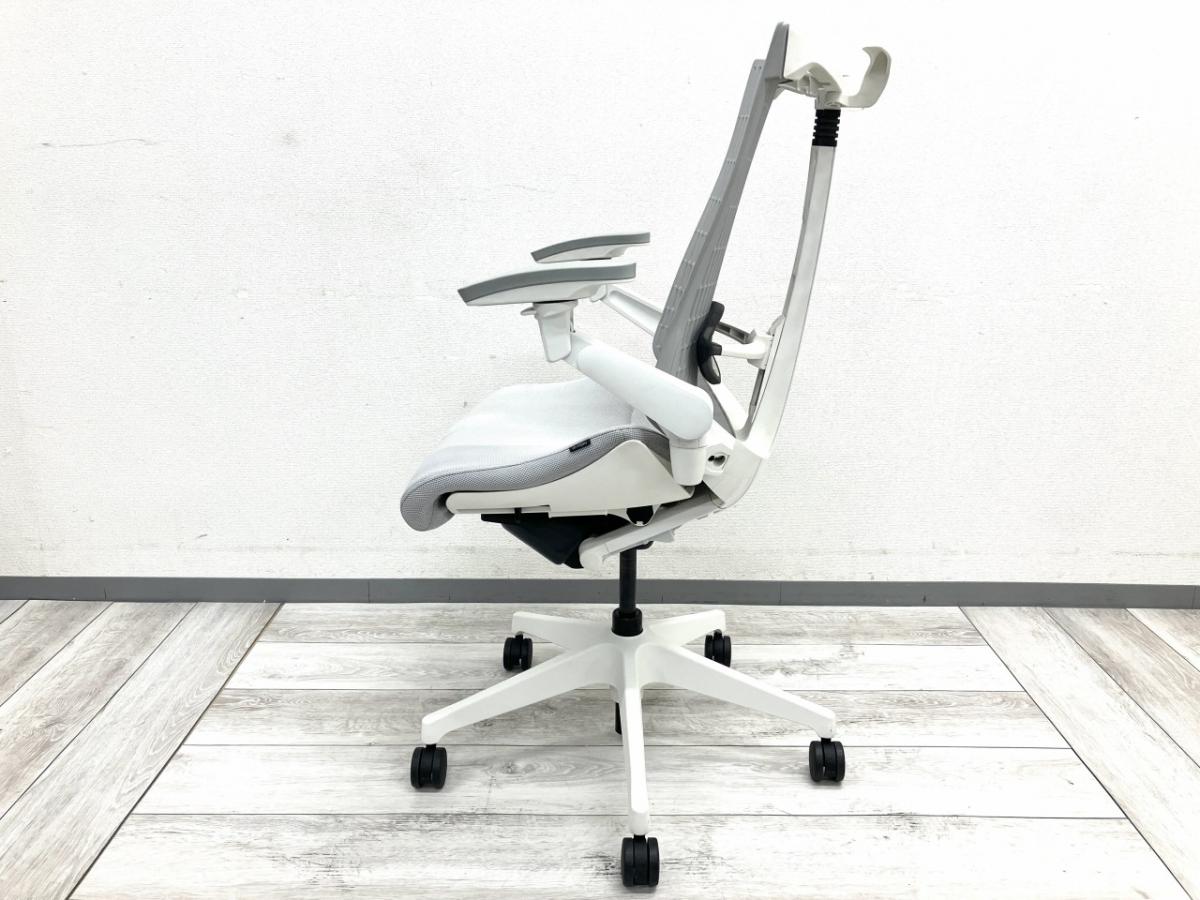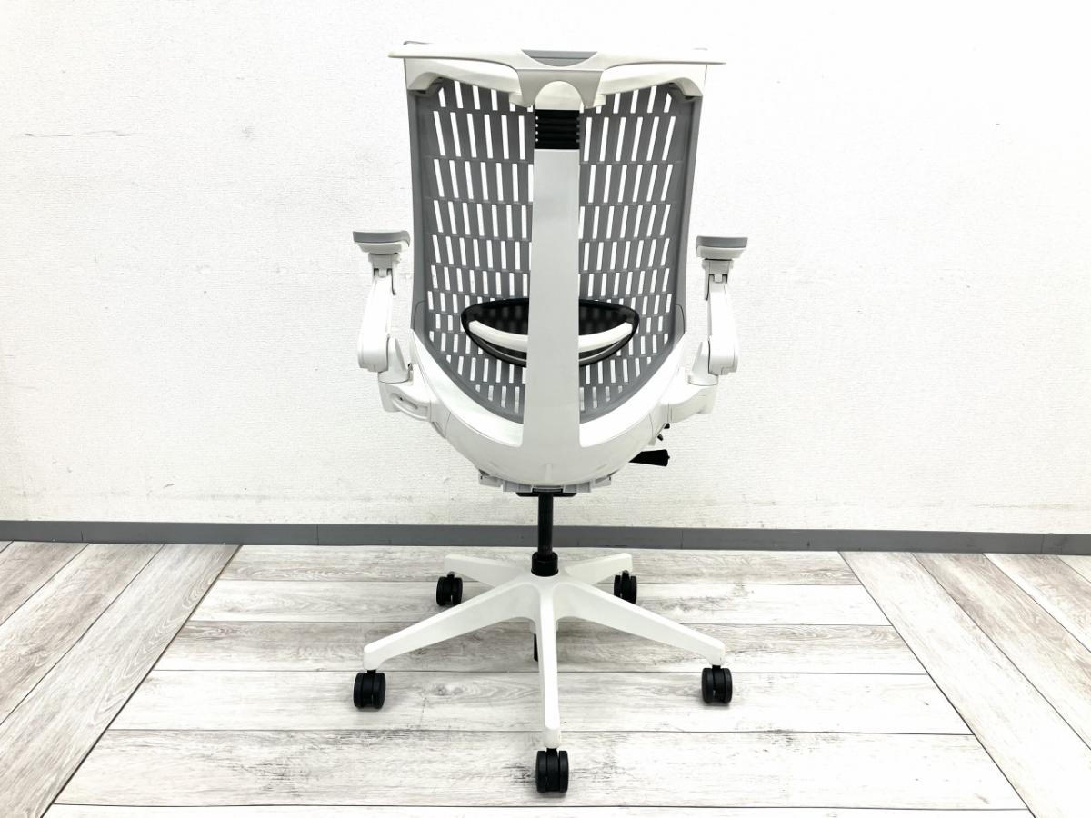 背面のメッシュ構造は身体の動きを妨げず、背骨に沿って自然にしなるため、長時間着座でも負担が少ないのがアクトチェアの魅力です。肘掛けは高さ調整が可能で、作業時の肩・腕の負担軽減にも効果的。ホワイトカラーベースのモデルはオフィスでも個人宅でも人気が高く、清潔感ある印象を与えます。2021年製のため耐用年数にも余裕があり、安心して長期利用していただけます。