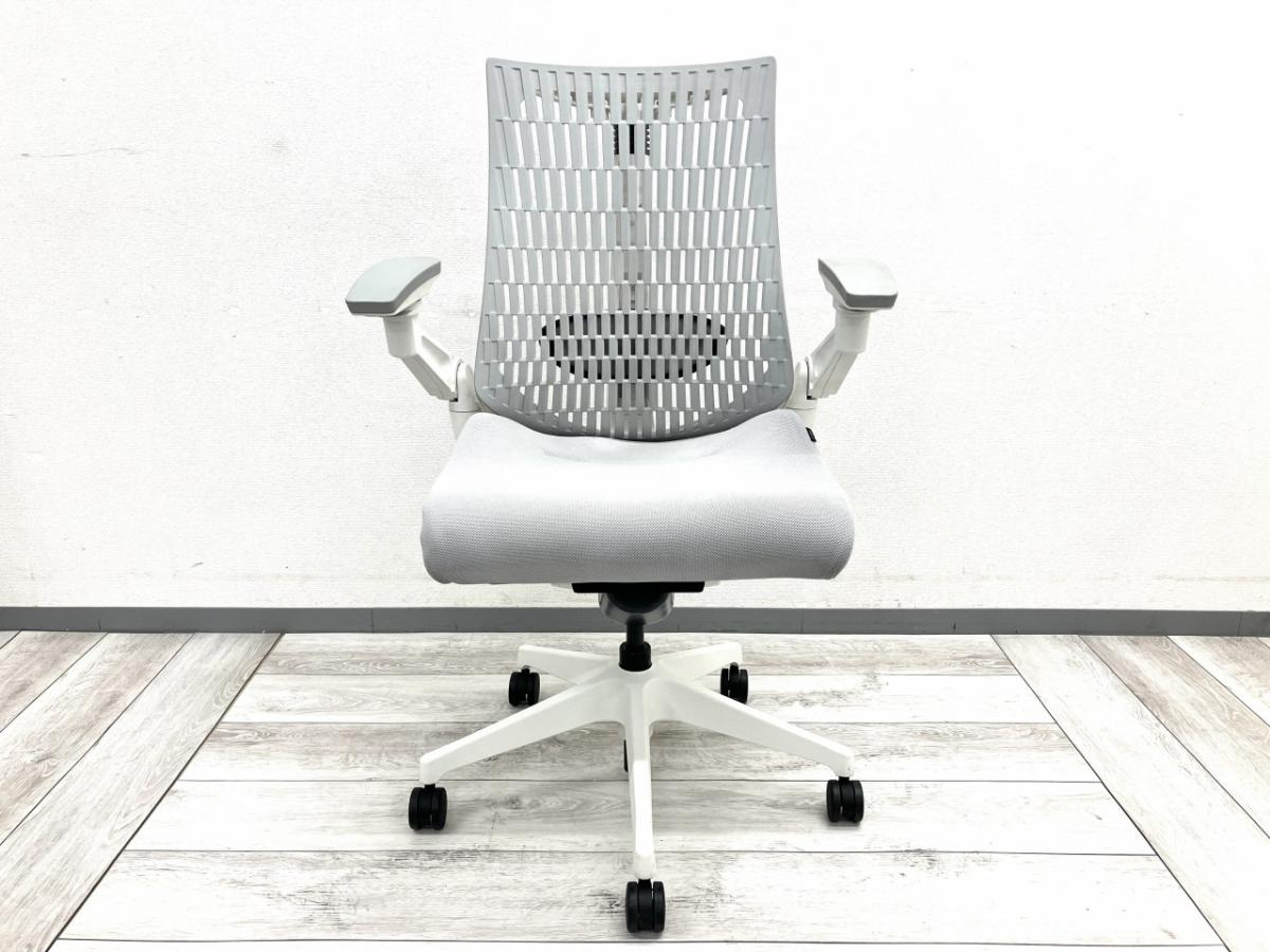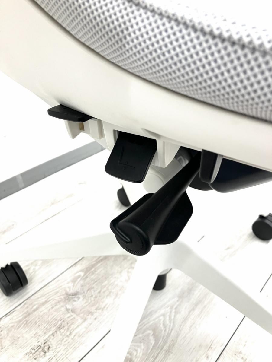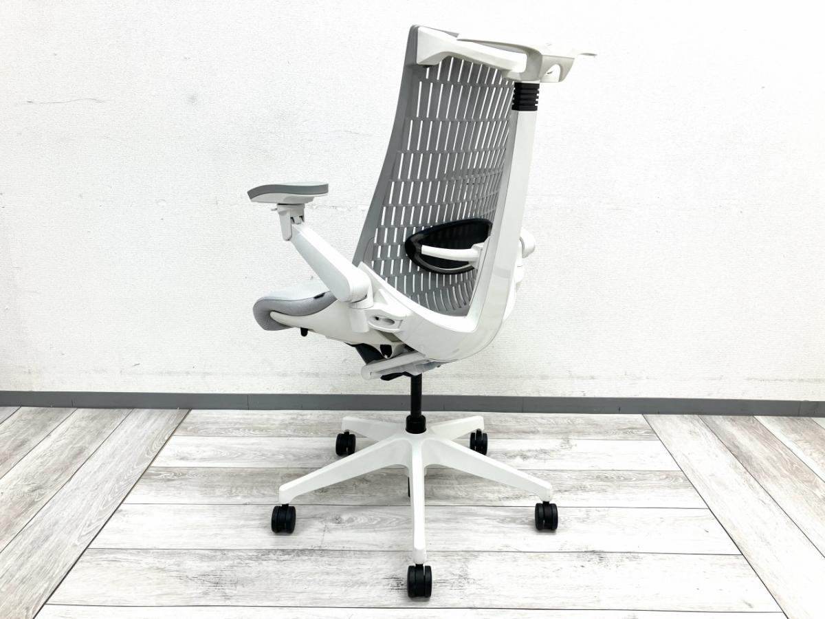 背面のメッシュ構造は身体の動きを妨げず、背骨に沿って自然にしなるため、長時間着座でも負担が少ないのがアクトチェアの魅力です。肘掛けは高さ調整が可能で、作業時の肩・腕の負担軽減にも効果的。ホワイトカラーベースのモデルはオフィスでも個人宅でも人気が高く、清潔感ある印象を与えます。2021年製のため耐用年数にも余裕があり、安心して長期利用していただけます。