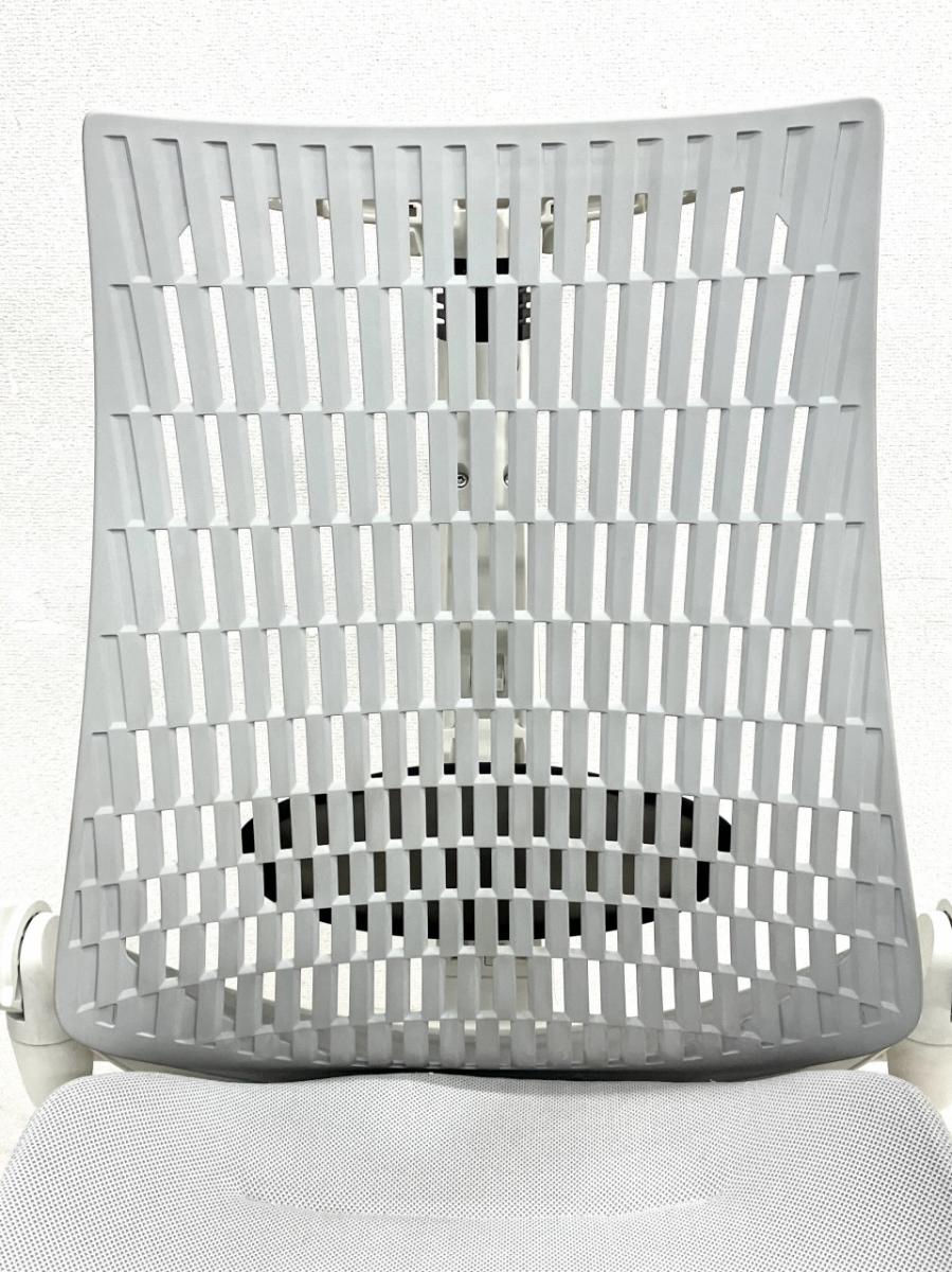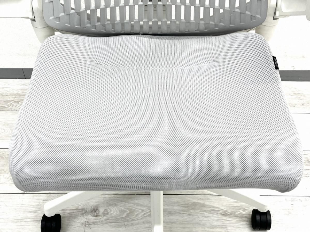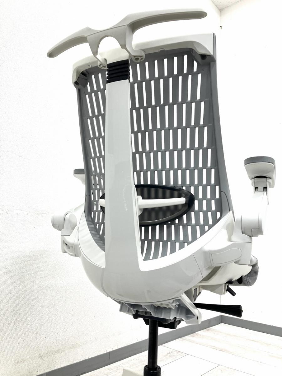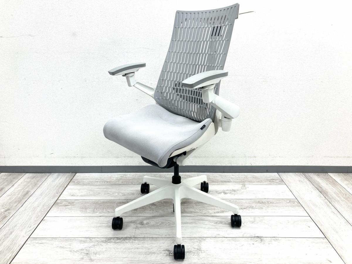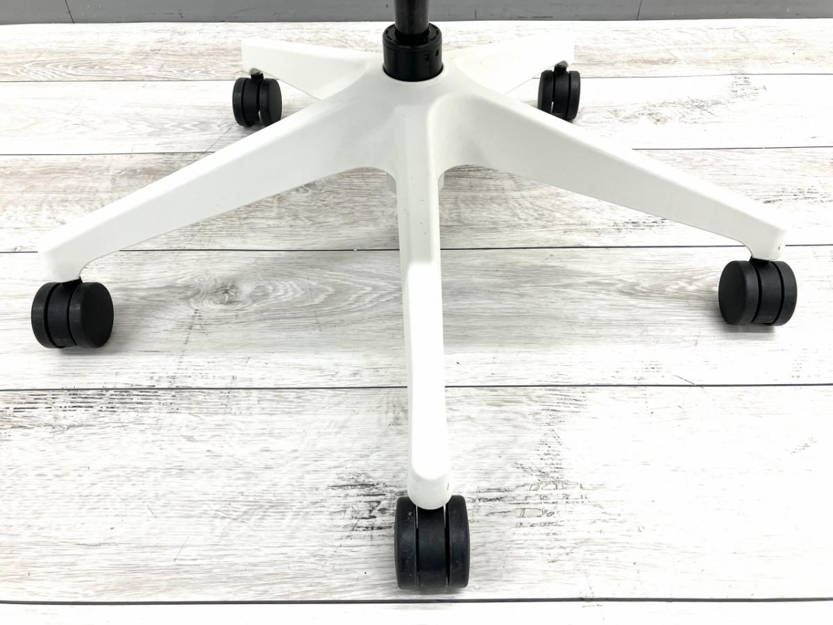 背面のメッシュ構造は身体の動きを妨げず、背骨に沿って自然にしなるため、長時間着座でも負担が少ないのがアクトチェアの魅力です。肘掛けは高さ調整が可能で、作業時の肩・腕の負担軽減にも効果的。ホワイトカラーベースのモデルはオフィスでも個人宅でも人気が高く、清潔感ある印象を与えます。2021年製のため耐用年数にも余裕があり、安心して長期利用していただけます。