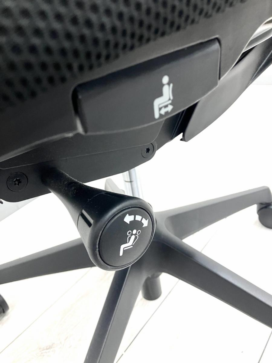 - 座面右下のダイヤル操作で、リクライニングの強弱調整が行えます。これまでのダイヤル式よりも、少ない回転数で、最弱?最強の調整が可能です。