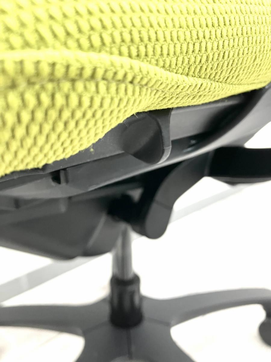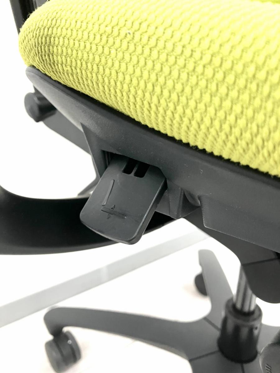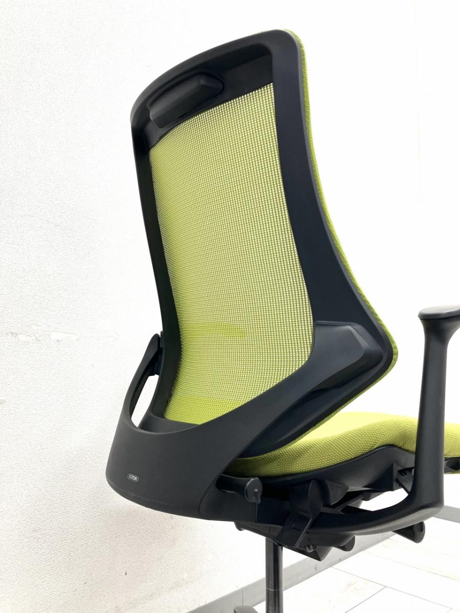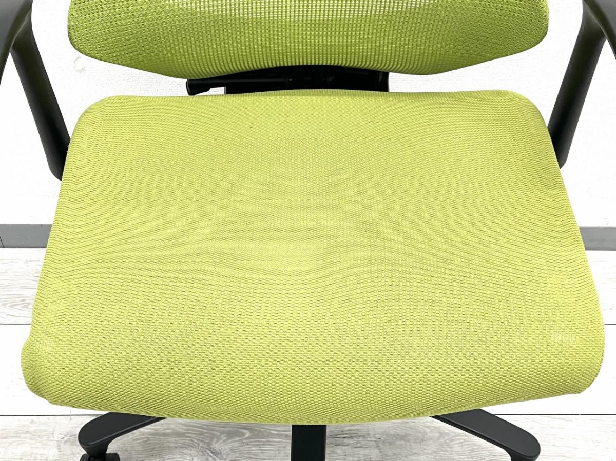 軽快な座り心地が魅力のエフチェアは、骨盤を自然に立てやすく、前傾・後傾どちらの姿勢にも対応できる設計になっています。肘掛けは固定式で安定感があり、タイピング時の腕の負担軽減にも効果的。ライトグリーンは中古市場でも人気が高く、明るいオフィス作りを目指す方に特におすすめです。コストパフォーマンス重視の方にも非常に扱いやすいモデルです。