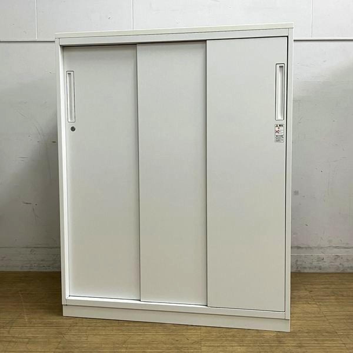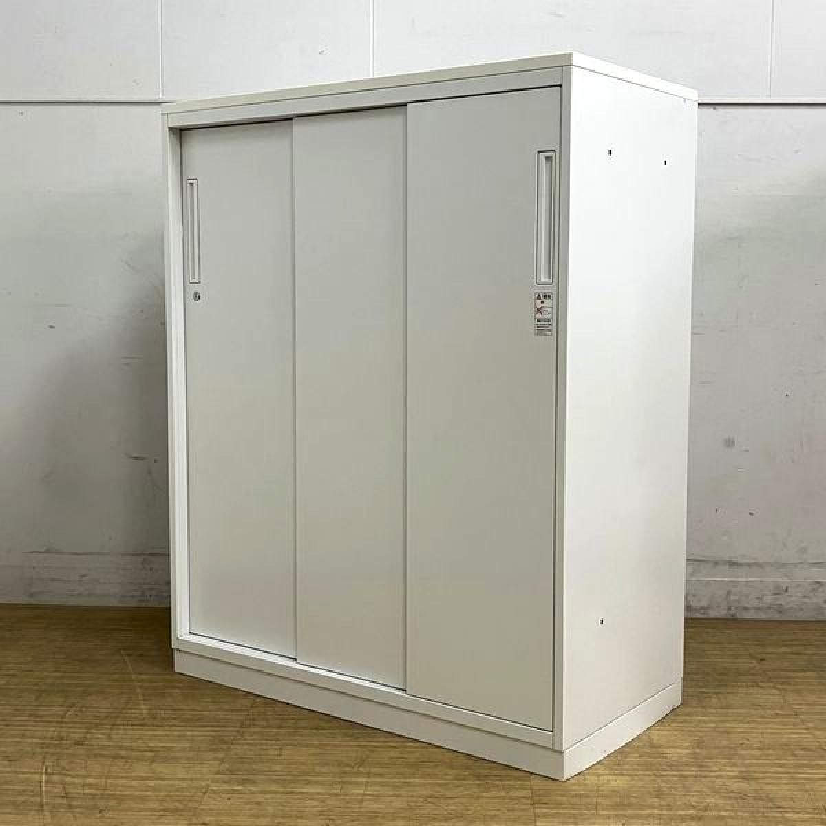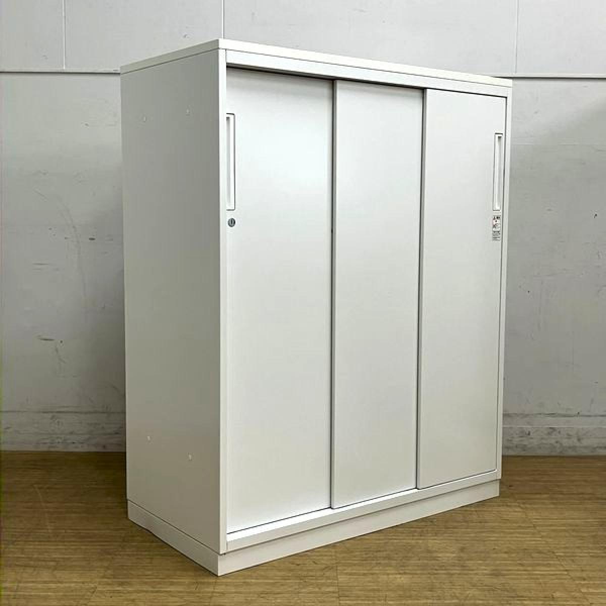 3枚引き戸書庫 コクヨ エディア 鍵付き(シリンダー錠) 天板付き 清潔感のあるホワイトキャビネット 導線を邪魔しないスライド式の扉- 名古屋千種店