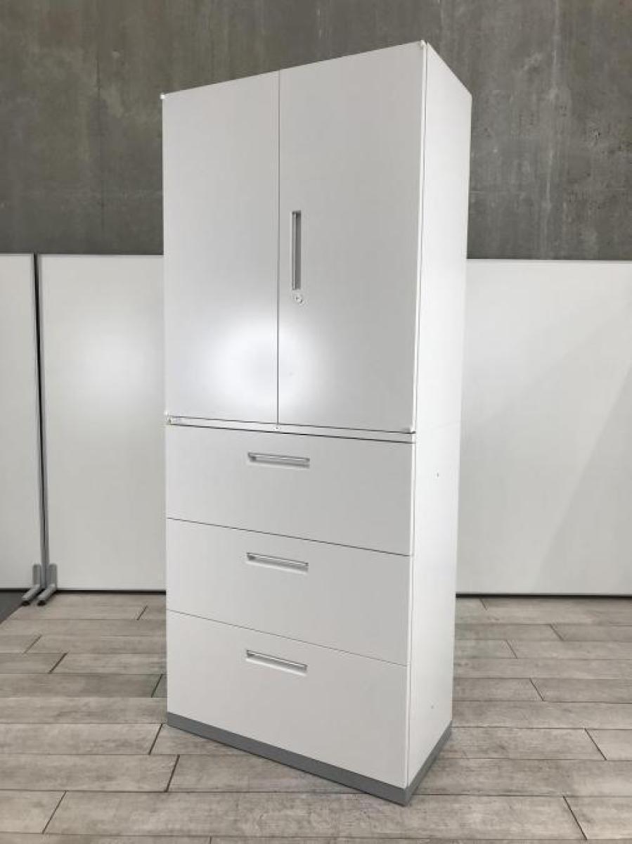 【使いやすさを追求したデザイン!大きめ取っ手で開閉らくらく!観音開き+3段引き出しの書庫セット!】■イナバ(INABA)製 TFシリーズ(ティーエフ) 両開き+3段ラテラル ハイキャビネット H2160㎜ ■シリンダー錠 ■ホワイト ※取手日焼け有
