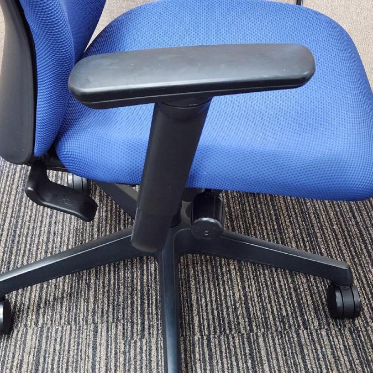 【シンプルなデザインと厚みのあるクッションが大人気!機能充実のワーキングチェア!】■オカムラ(okamura)製 スラートチェア(sulato) ローバック 肘付き ■ミディアムブルー- つくば店
