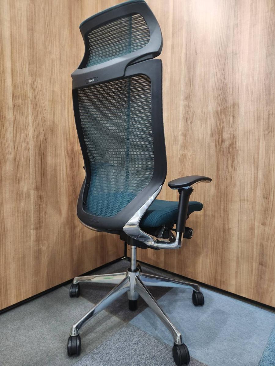 【オフィスの執務室、会議室におすすめ!】■オカムラ(okamura)製 バロン(Baron)チェア 肘付き ハイバック ■可動肘 ■ヘッドレスト付き ■グリーン【硬めの座面が大人気!国産メッシュチェアの代表格!】サーキュラーバリューCO2削減量の算出について