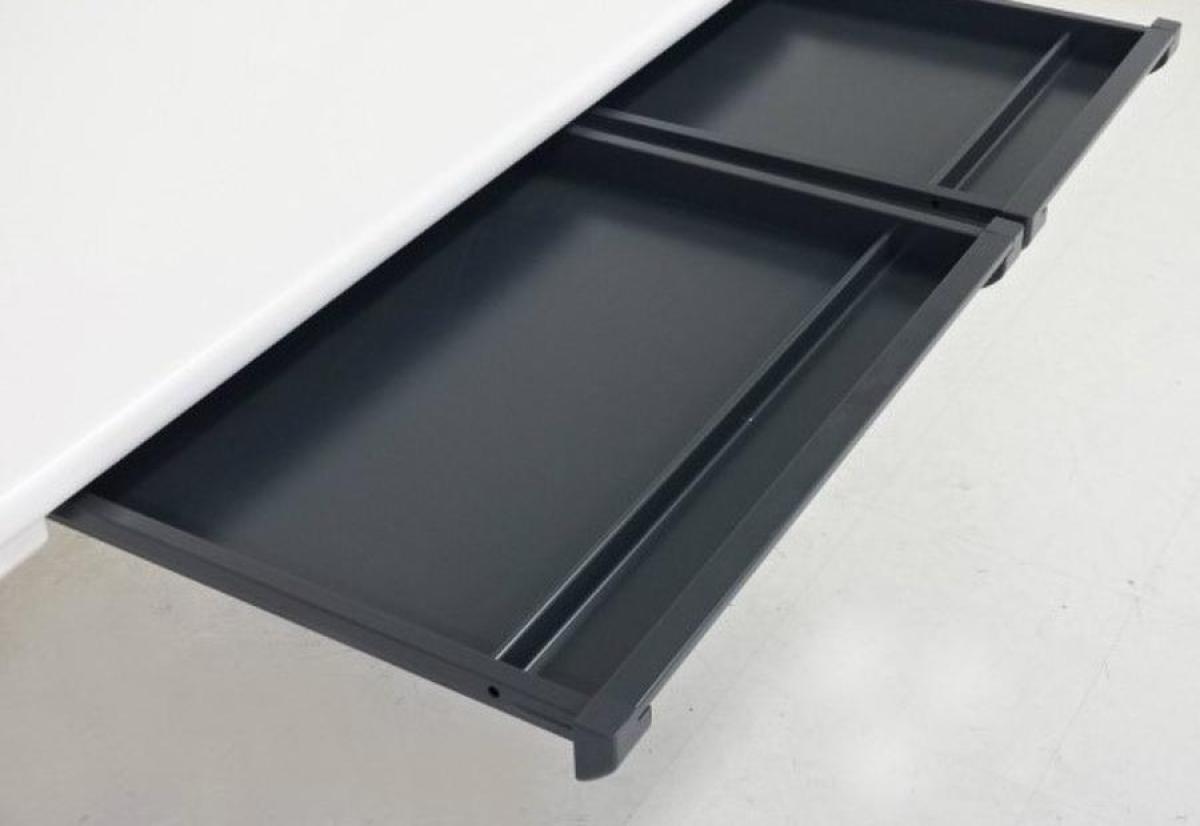 天板下に薄い引き出しが付いており備品などの収納にも役立ちます。