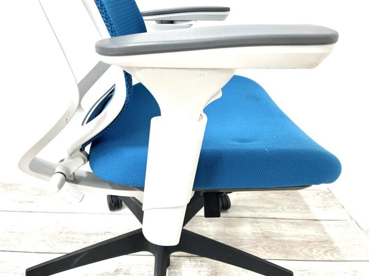 【2脚限定の為、クレジット決済優先!】【二重フレーム構造がもたらすしなやかで美しい背もたれ機能!簡易操作で自分に合った姿勢をサポート!】■コクヨ(KOKUYO)製 デュオラ(Duora) 肘付き ハイバック ■背面メッシュ ■可動肘 ■ターコイズブルー×ホワイトシェル ■オフィスバスターズなんば店