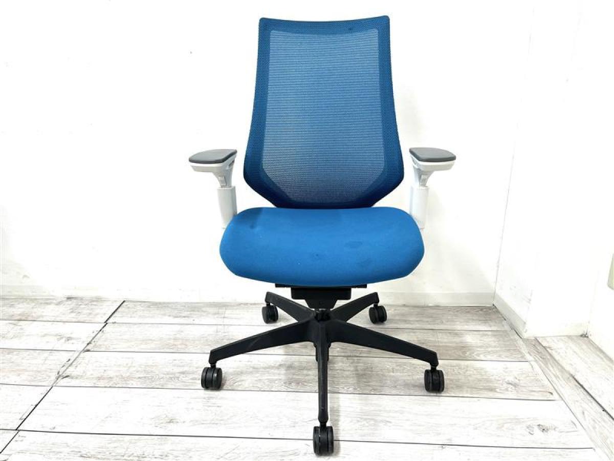 ■コクヨ(KOKUYO)製 ■デュオラ(Duora)チェア ■肘付き/可動肘 ■ハイバック ■背面メッシュ ■ヘッドレスト付き ■ランバーサポート付き ■ブルー×ホワイトシェル 【弊社使用欄:A01062318 K】