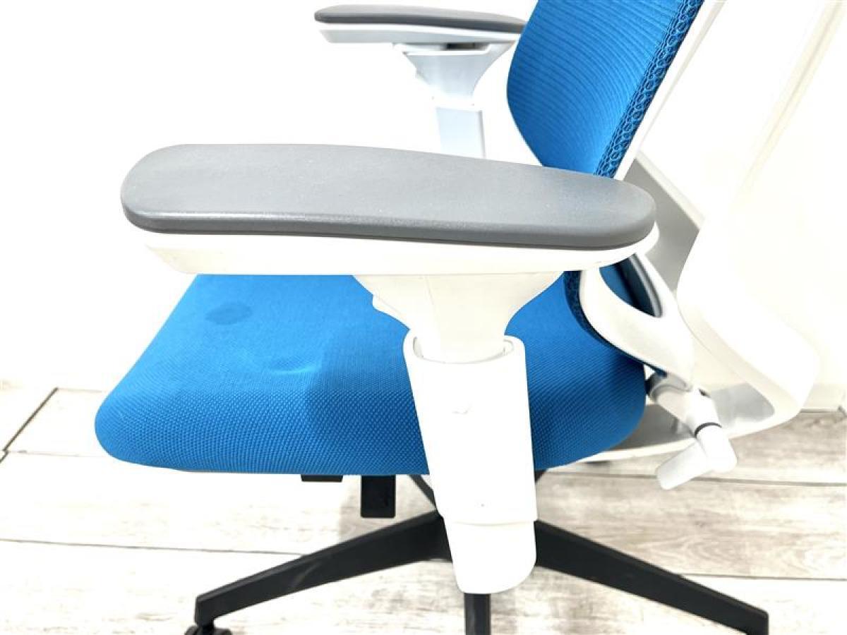 【2脚限定の為、クレジット決済優先!】【二重フレーム構造がもたらすしなやかで美しい背もたれ機能!簡易操作で自分に合った姿勢をサポート!】■コクヨ(KOKUYO)製 デュオラ(Duora) 肘付き ハイバック ■背面メッシュ ■可動肘 ■ターコイズブルー×ホワイトシェル ■オフィスバスターズなんば店