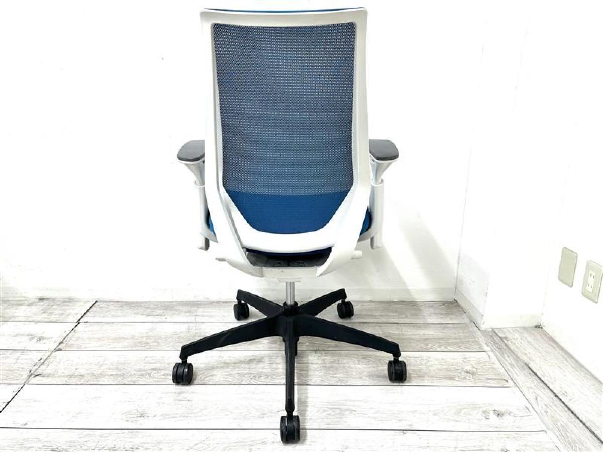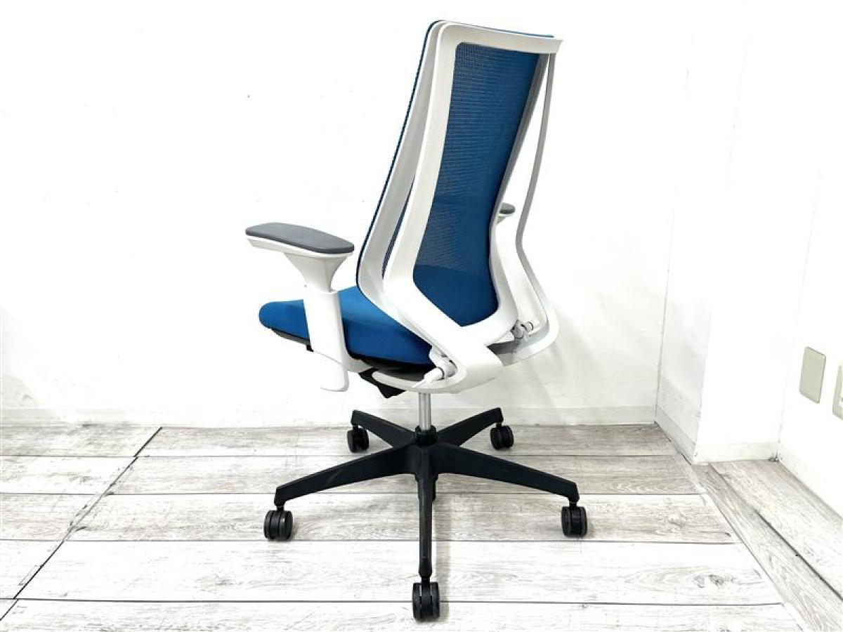 ■コクヨ(KOKUYO)製 ■デュオラ(Duora)チェア ■肘付き/可動肘 ■ハイバック ■背面メッシュ ■ヘッドレスト付き ■ランバーサポート付き ■ブルー×ホワイトシェル 【弊社使用欄:A01062318 K】