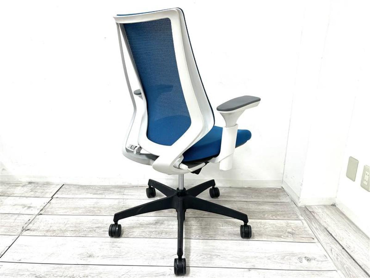 【二重フレーム構造がもたらすしなやかで美しい背もたれ機能!簡易操作で自分に合った姿勢をサポート!】■コクヨ(KOKUYO)製 デュオラ(Duora)チェア ハイバック肘付き ■背面メッシュ ■可動肘 ■プルシアンブルー×ホワイトシェル
