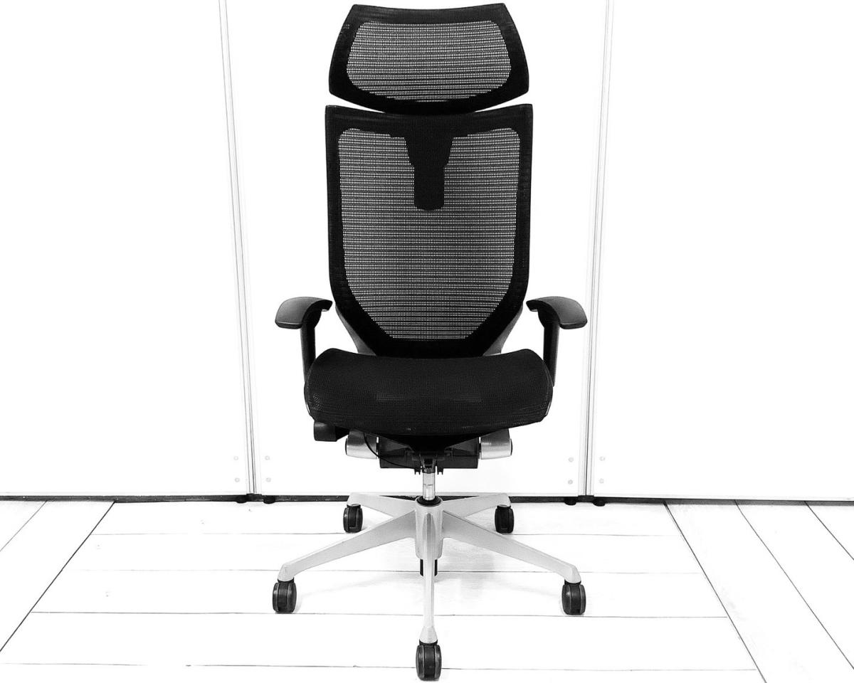 【座面メッシュ】スタンダードメッシュ ブラックフレーム アームレスト付き ヘッド付きオススメ(おすすめ) 大人気 ・Okamura/オカムラ ・Baron/バロン ※横浜本店撮影画像※- 横浜本店