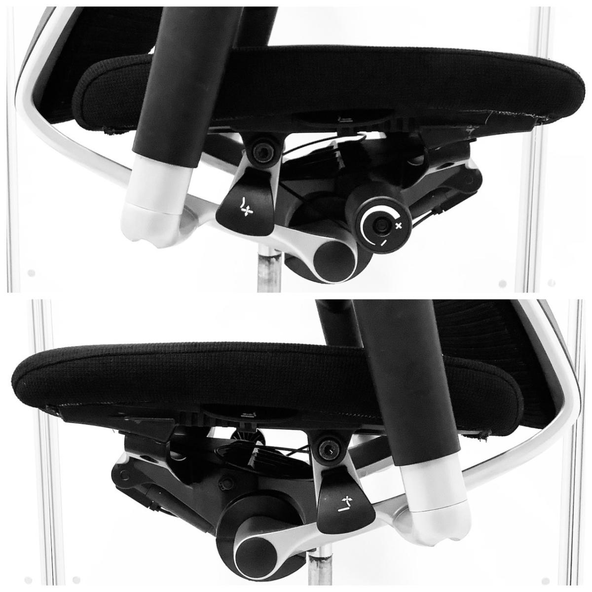 もちろん座り心地もコンテッサの直系ですから快適です。座面の素材はクッションとメッシュの2タイプあります。私、個人的には座面の中心部分でも外側でもテンションが変わらないクッション素材が、足を閉じても開いても快適なので推しです!"
