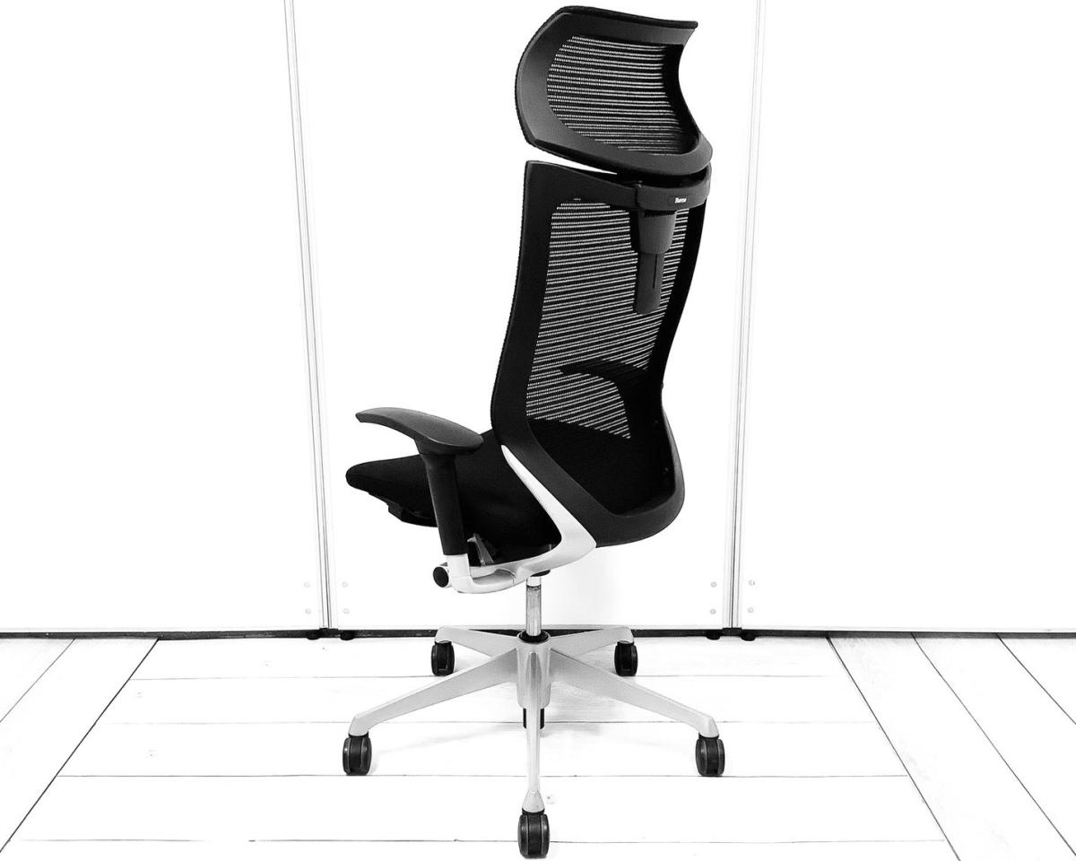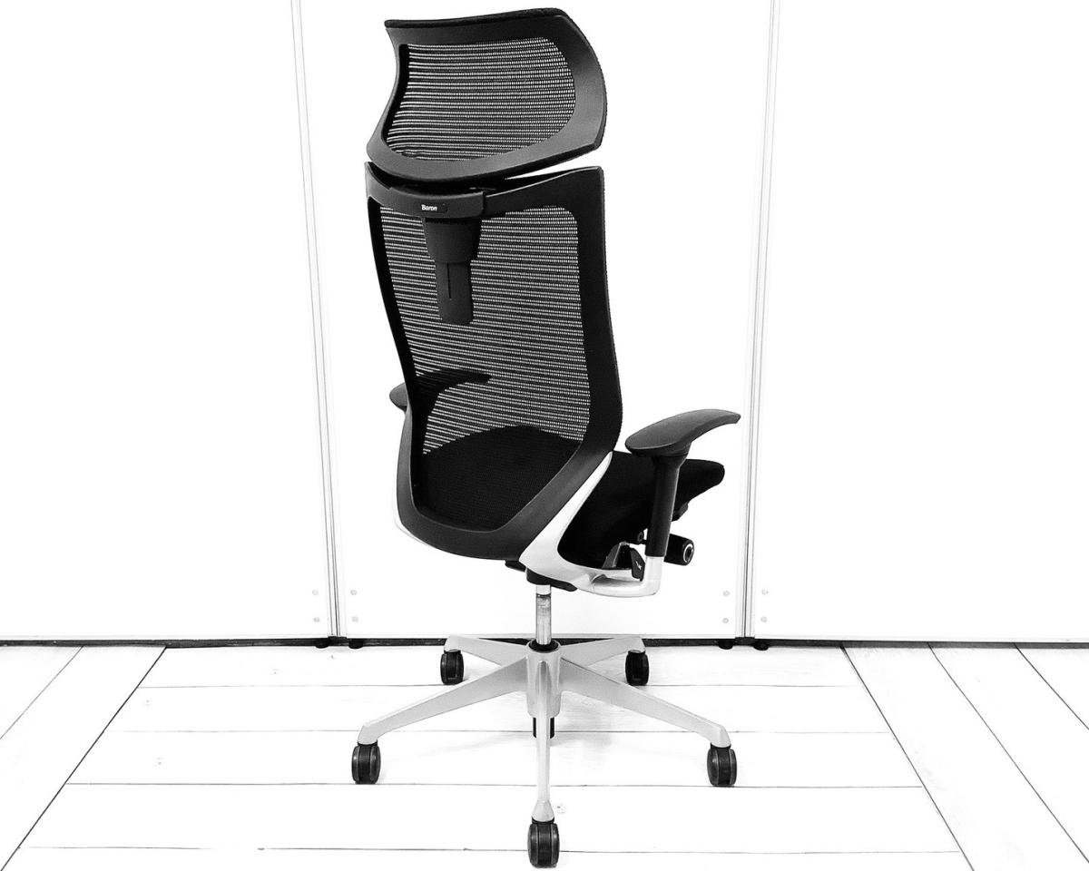 【ベストなポジションが得られる先進設計!長時間の着座でも疲れにくいサポート感!】■オカムラ(okamura)製 バロンチェア(Baron) 肘付 ハイバック 背面メッシュ ■固定肘 ■ブラック