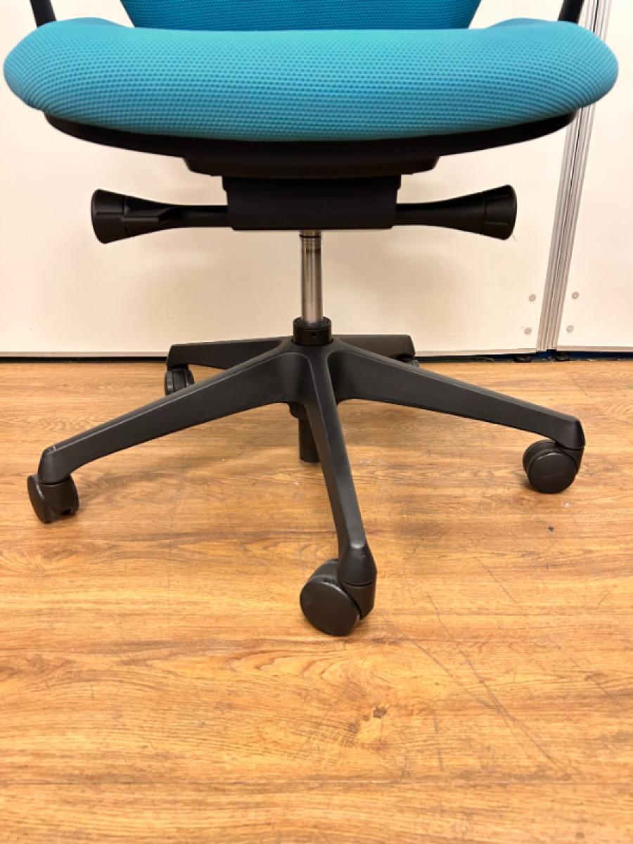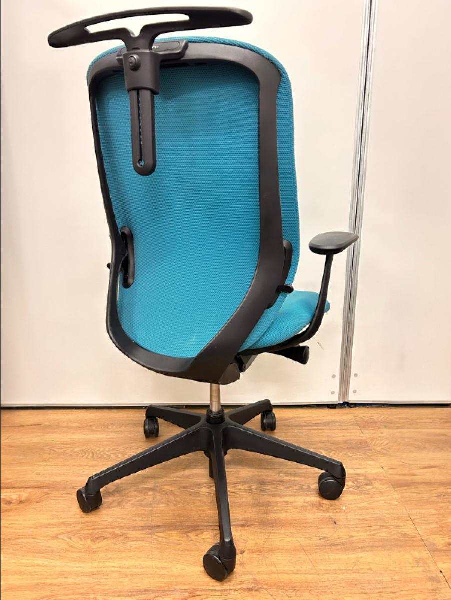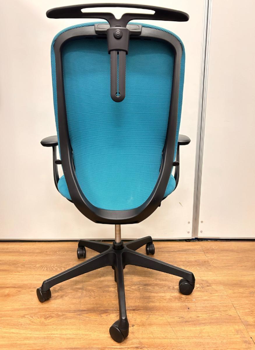 【新感覚のオフィスシーティング!】■オカムラ シルフィチェア 肘付 ブルーグリーン ※擦れ・ホツレ・破れ・色落ちがあるためお安く!【在庫入替セール品!】
