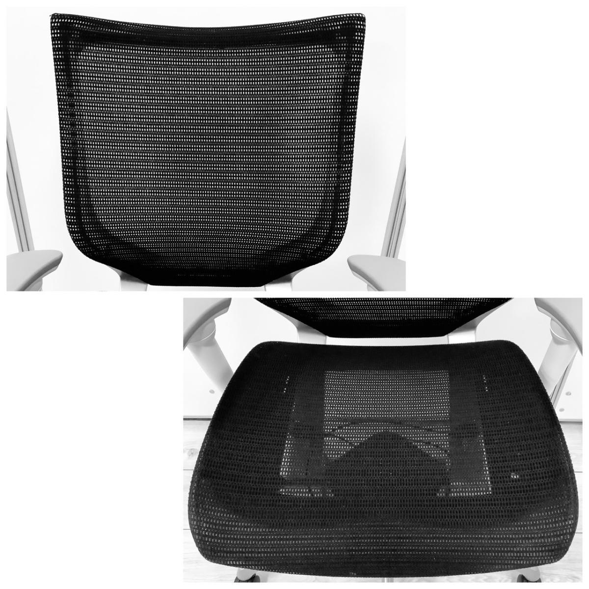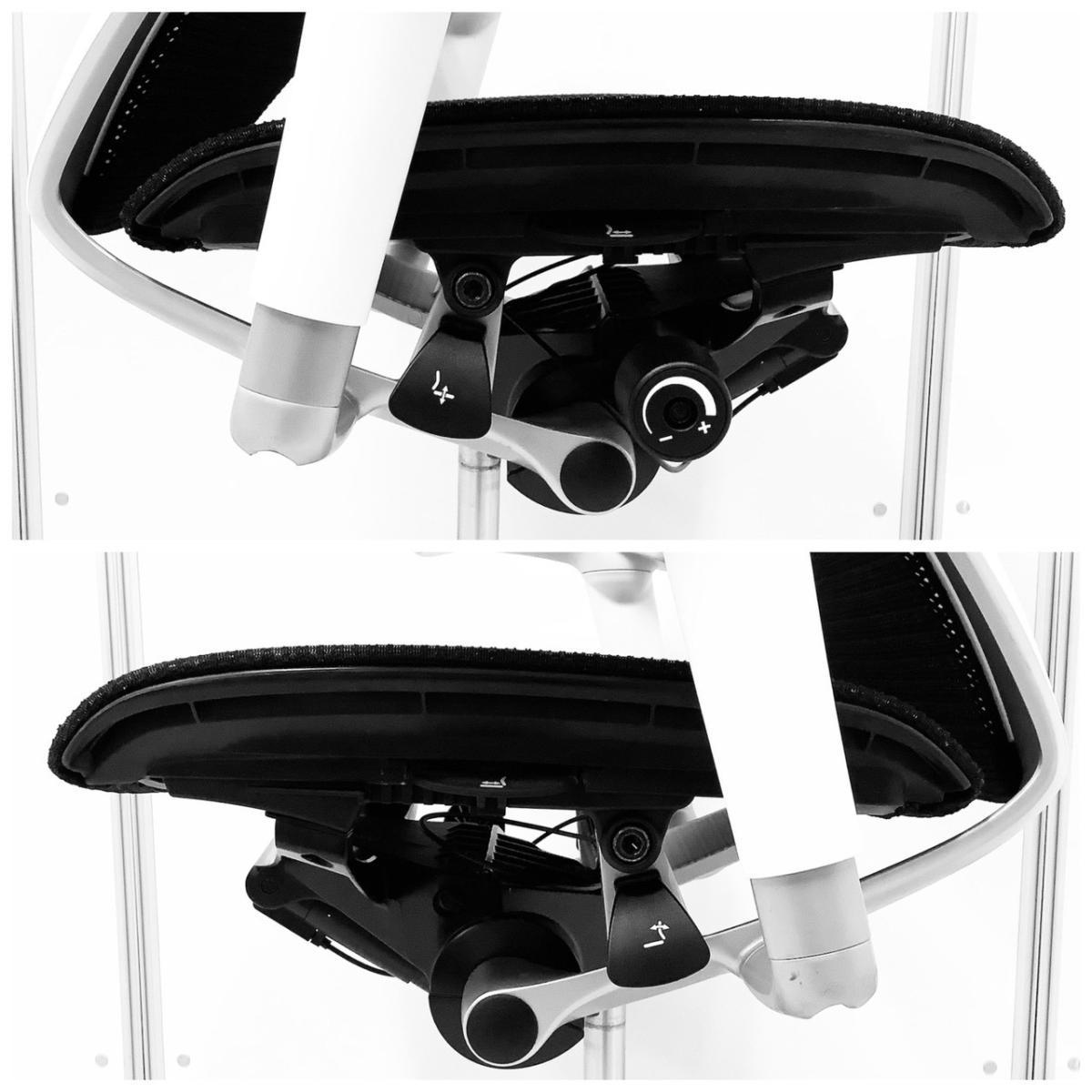 もちろん座り心地もコンテッサの直系ですから快適です。座面の素材はクッションとメッシュの2タイプあります。私、個人的には座面の中心部分でも外側でもテンションが変わらないクッション素材が、足を閉じても開いても快適なので推しです!"