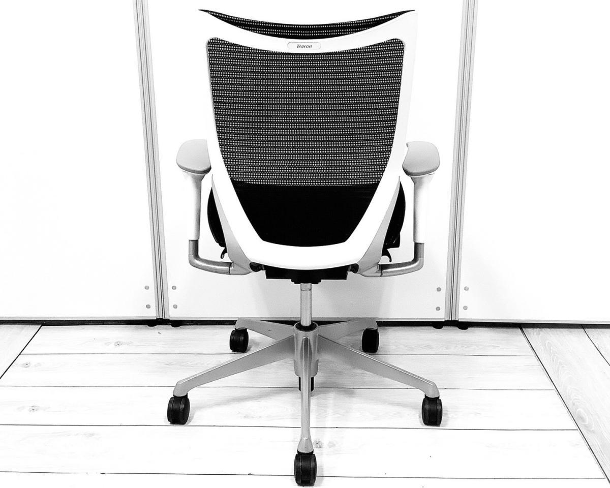 【定価約20万円以上】【長時間の着座でも疲れにくいサポート感!】■オカムラ製 バロンチェア 肘付ローバック ■ブラック ■固定肘 ■メッシュ背面 【ベストなポジションが得られる先進設計!】