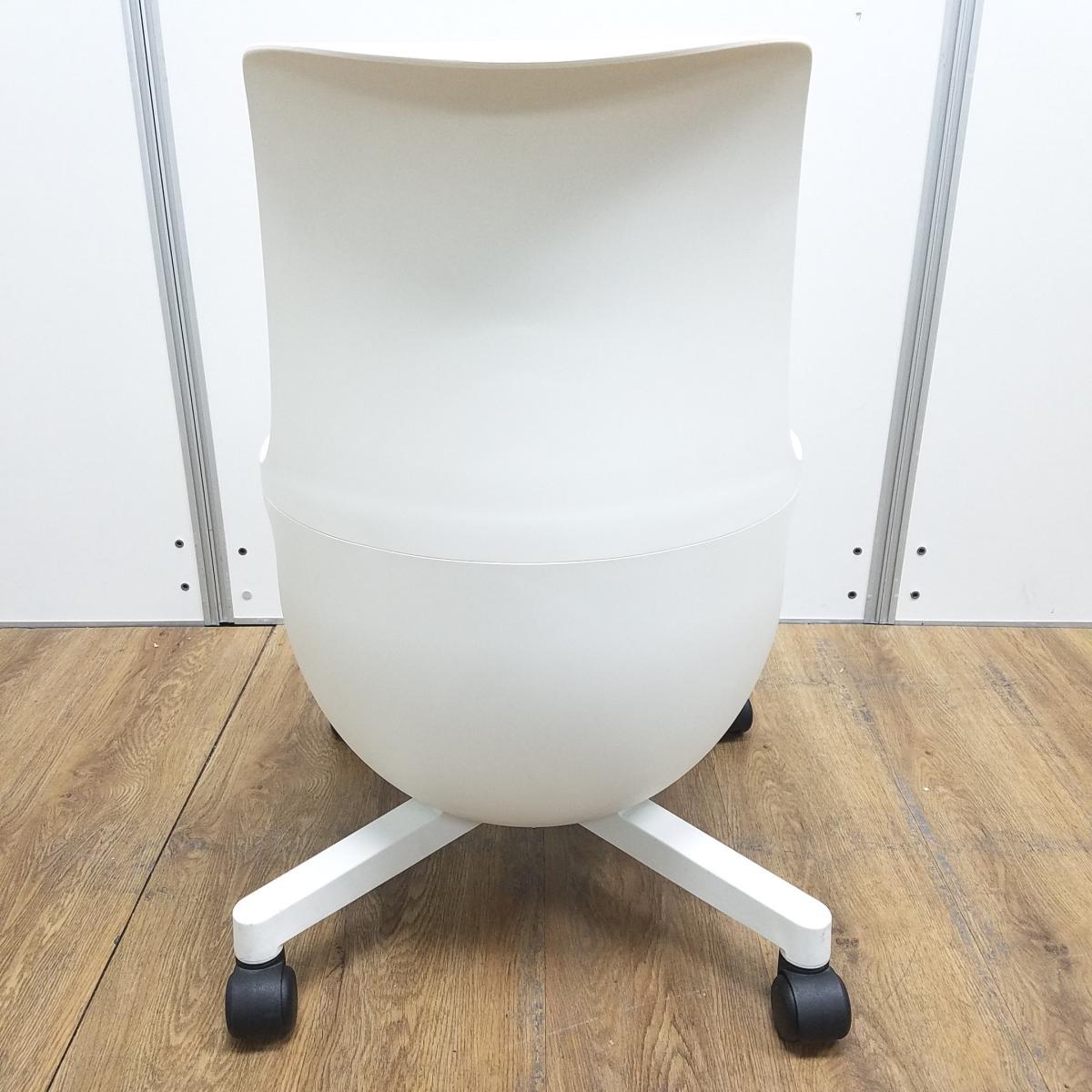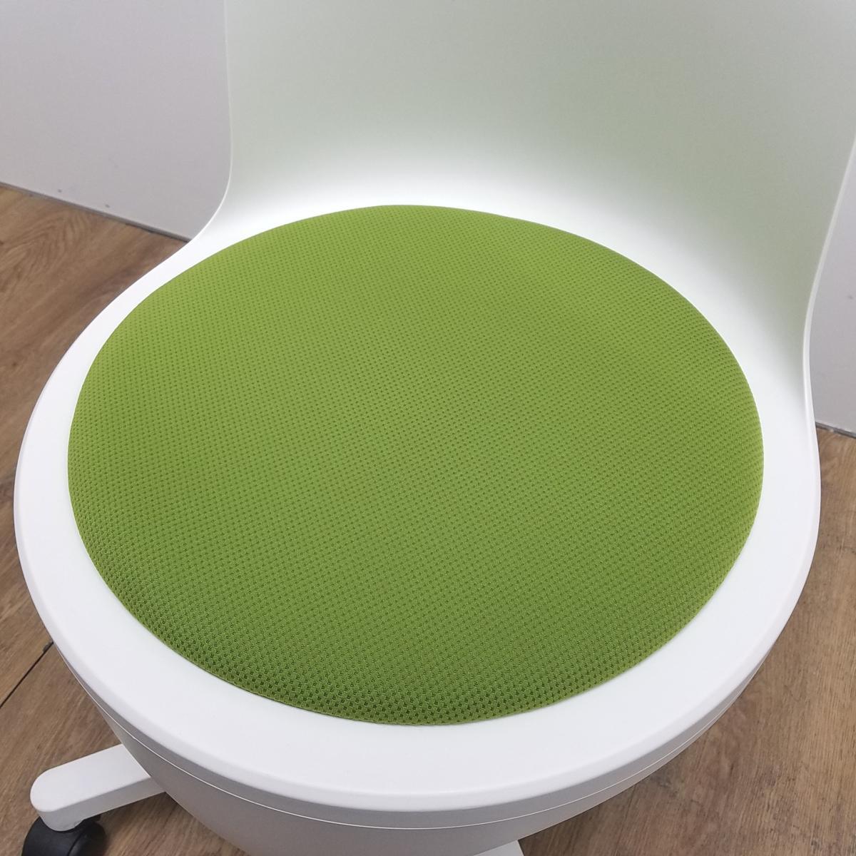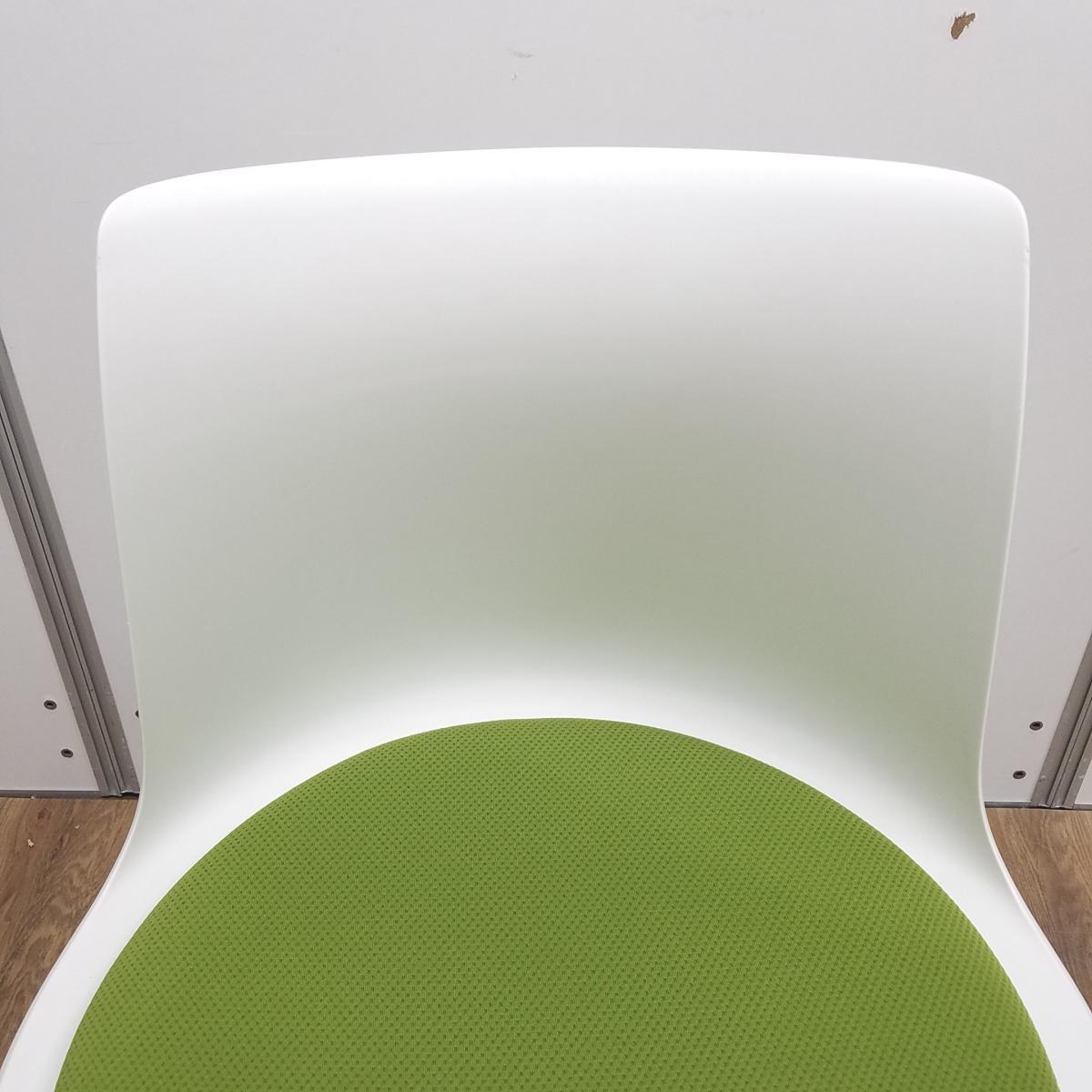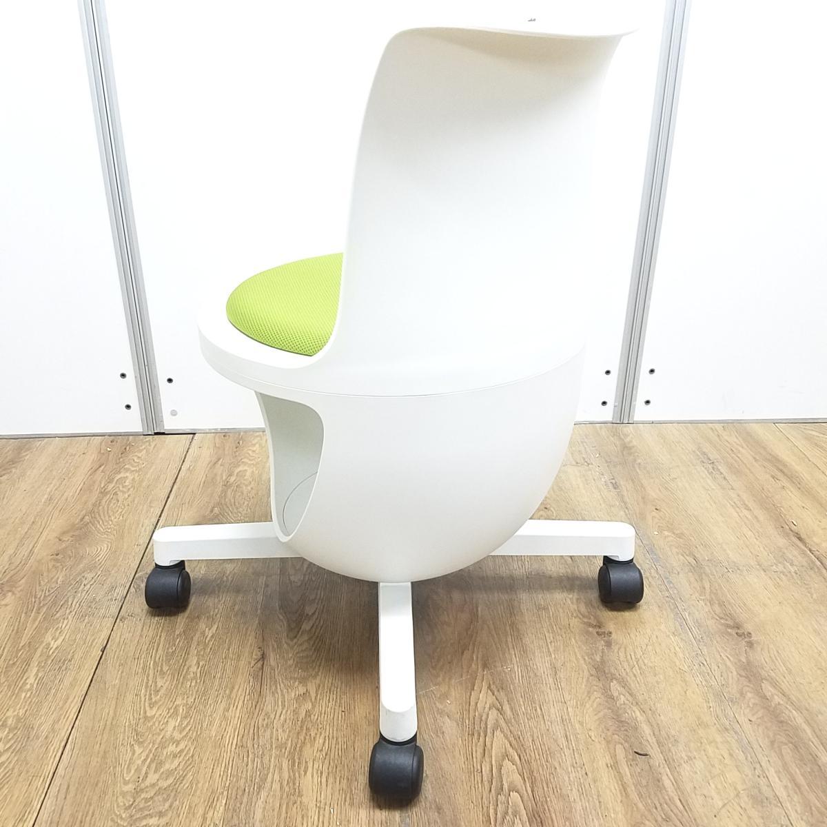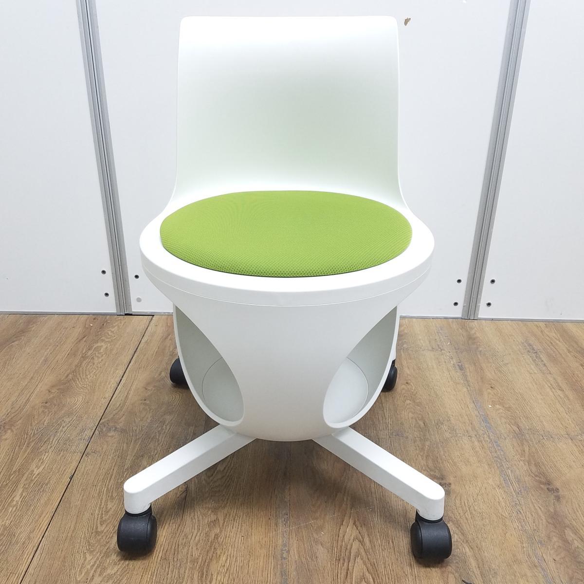 ★【T2】【商品入替のため、残り1脚限り】オカムラ製 イーチェア(e-chair) グリーン 肘無 ミーティングチェア キャスター付 荷物置きスペース有 空間に活気と楽しさをもたらす、たまごのようなアクティブチェア! ミーティングチェア!!- 京都東寺店