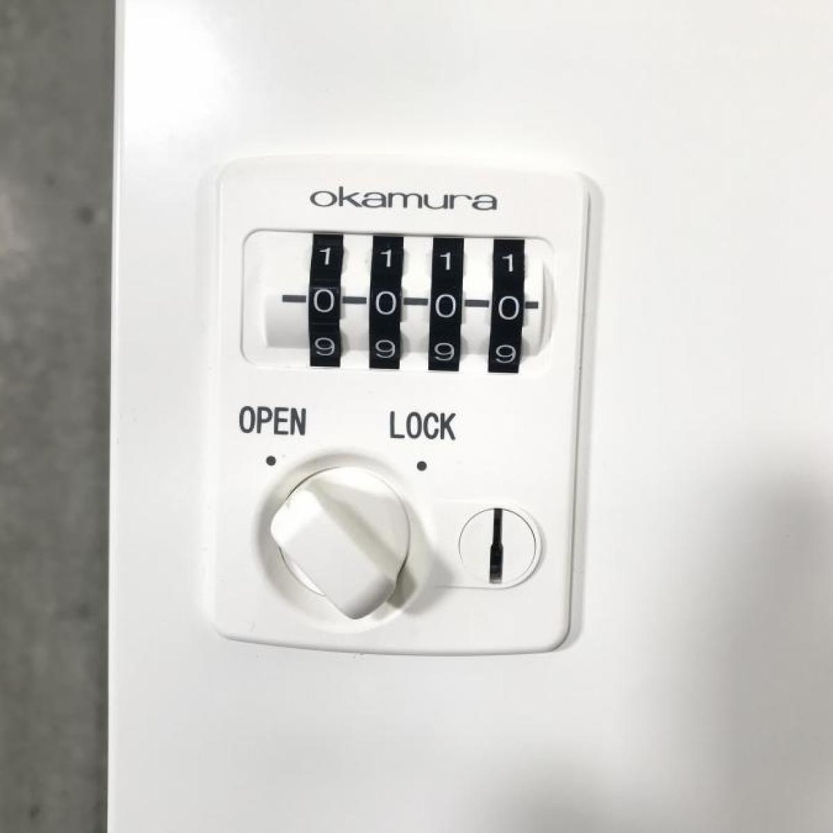 【在庫入替セール】オカムラ レクトライン 4人用メールロッカー ダイヤル錠 ホワイト天板付き 暗証番号検索キーは別途費用 ※錠前部分に日焼けあり・扉部分に若干目立つ打痕あり