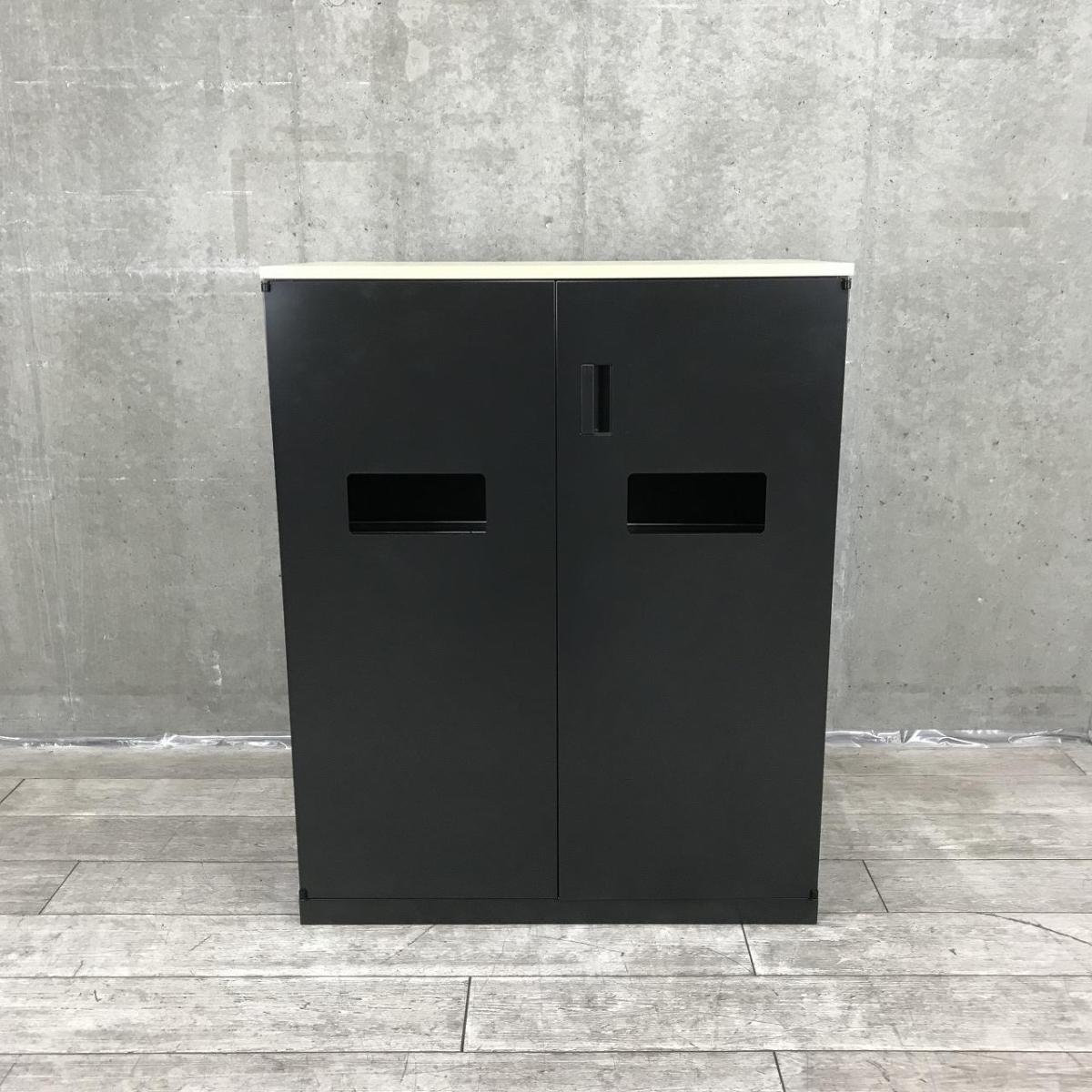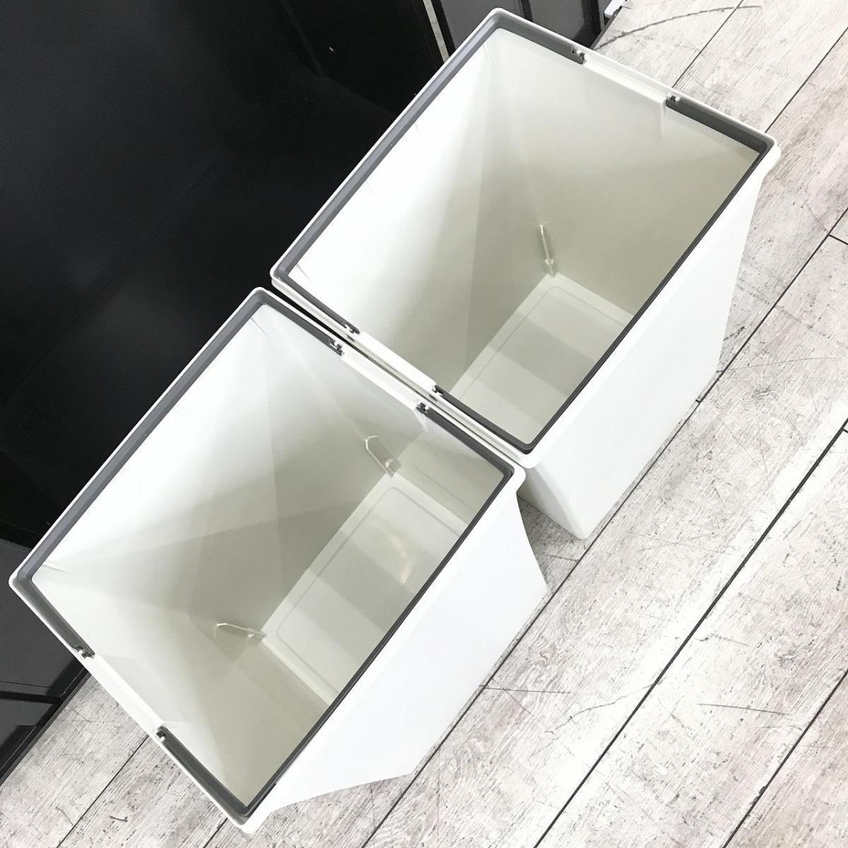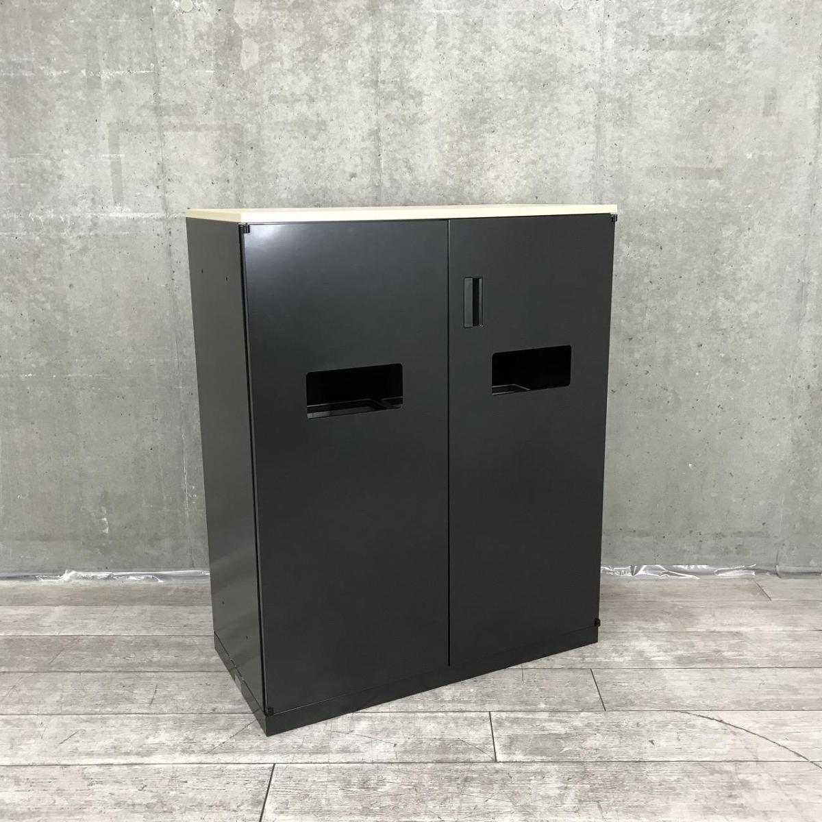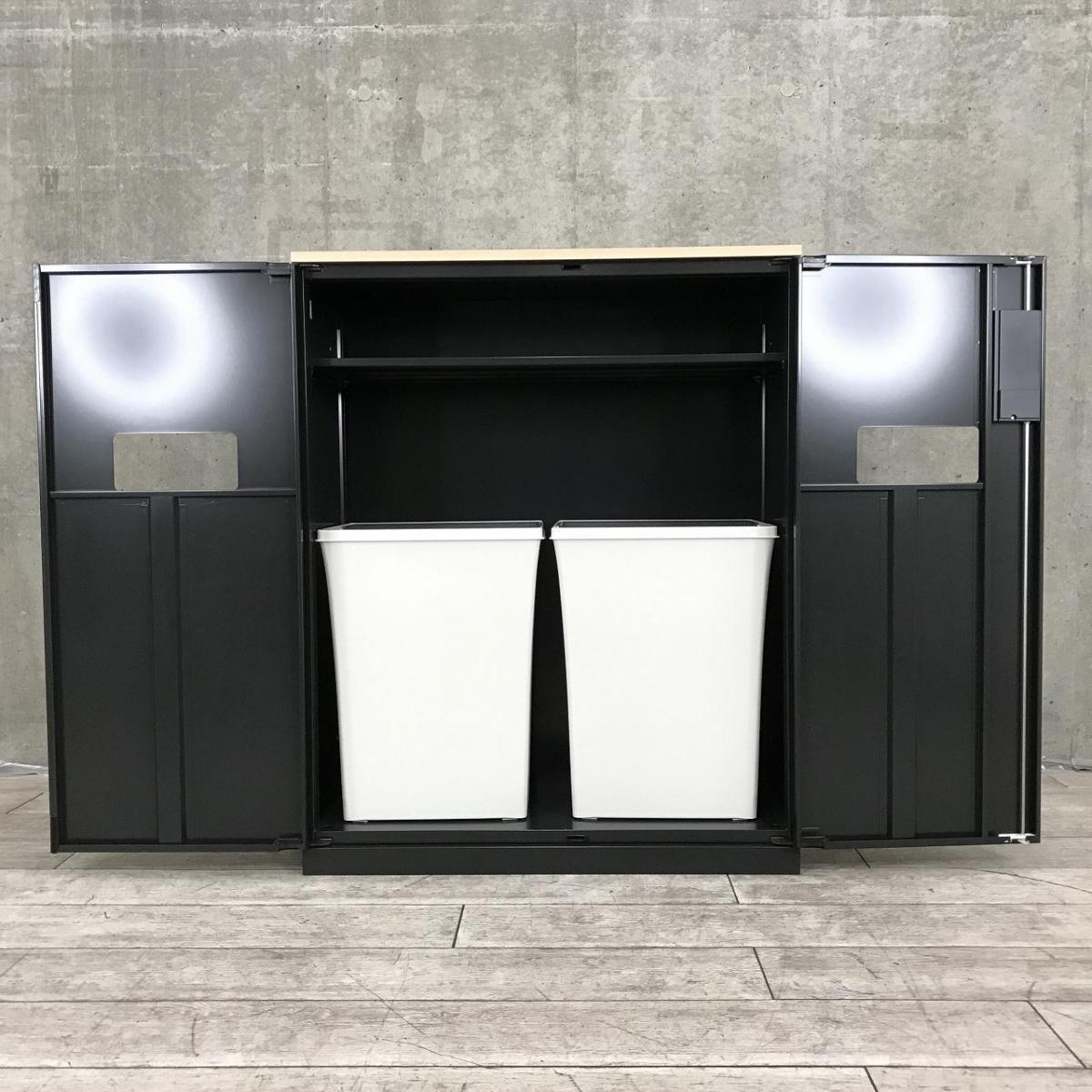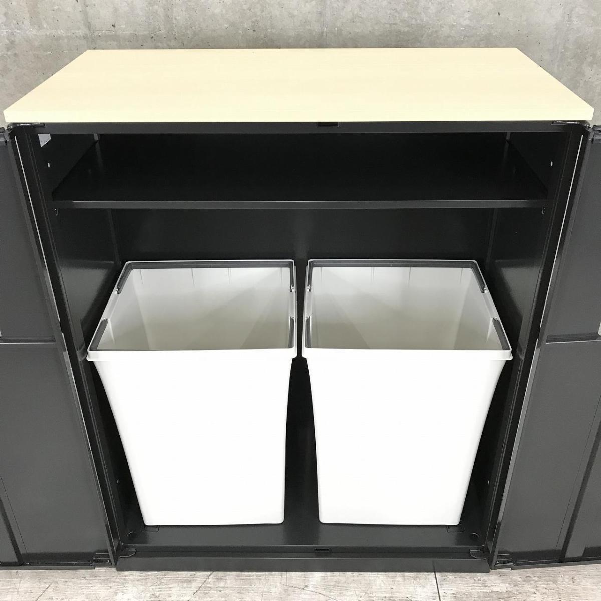 【用途別に分別してご利用可能!中古市場ではレアなダストボックス!】/オススメ(おすすめ) /人気商品【弊社使用欄:A01038560】■トラッシュユニット ゴミ箱×2付き ■天板:木目ナチュラル/本体:ブラック ■ベース付/ウチダ(UCHIDA)製 ハイパーストレージ(HS)シリーズ ダストボックス- 池袋店