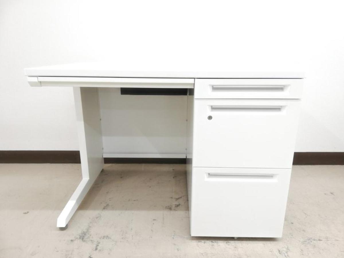 【定番のホワイトデスク!引き出し4段で収納バッチリ!】■オカムラ製 アドバンスシリーズ 片袖机 引き出し4段 ■W1000mm ■ネオホワイト
