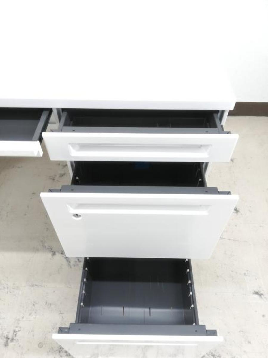 【在庫入替セール】オカムラ アドバンス ホワイト 片袖机 引き出し4段 より収納したい方にうってつけの仕様 鍵付き シリンダー錠 ※天板裏の薄引き出しは実物には付属していません