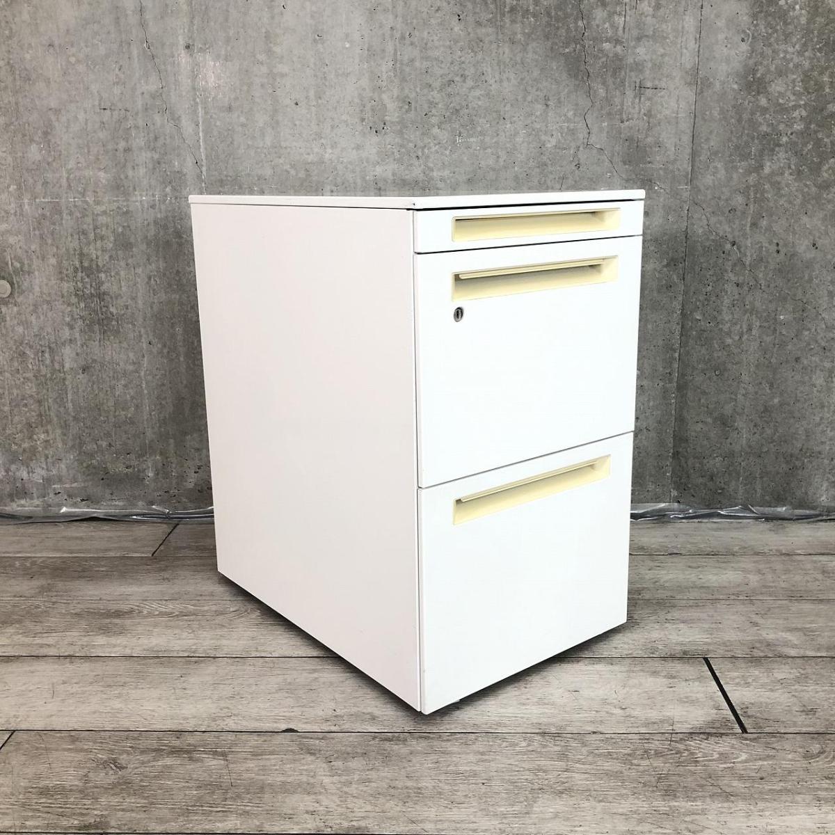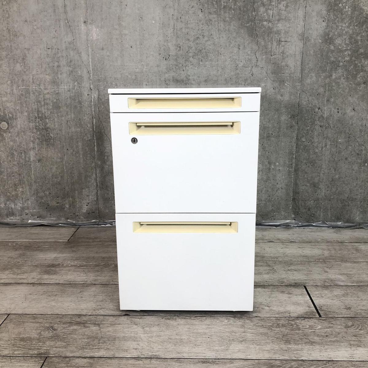 【フリアドデスクや平机の収納力アップに最適!】■オカムラ(okamura)製 アドバンス(ADVANCE)シリーズ 3段ワゴン フリアド用 W390×D575×H650㎜ ■シリンダー錠 ■ホワイト ※日焼け有【IB】在庫がある店舗一覧