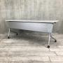 【定価約8万円】【折りたたみ収納が秀逸!スタイリッシュなデザインで高品質!2~3人使用に最適!】■オカムラ(okamura)製 ネスティア(NESTIA)シリーズ サイドスタックテーブル フラップタイプ W1800×D600㎜ ■幕板付 ■グレー- 茨城南店