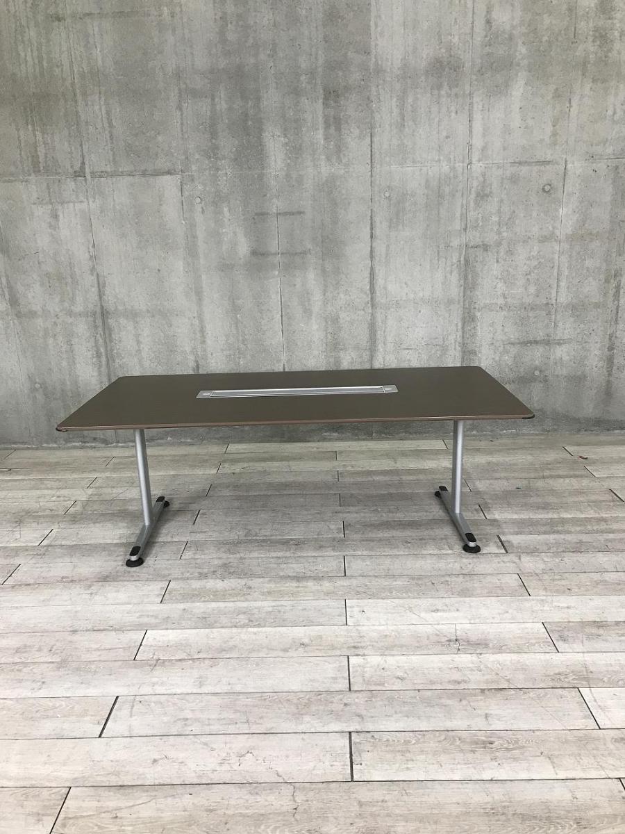 ☆W2000mm!【オフィシャルな空間にもフィット!】■コクヨ製 会議用テーブル 配線ボックス付 ブラウン ■スタイリッシュで上質なデザイン!
