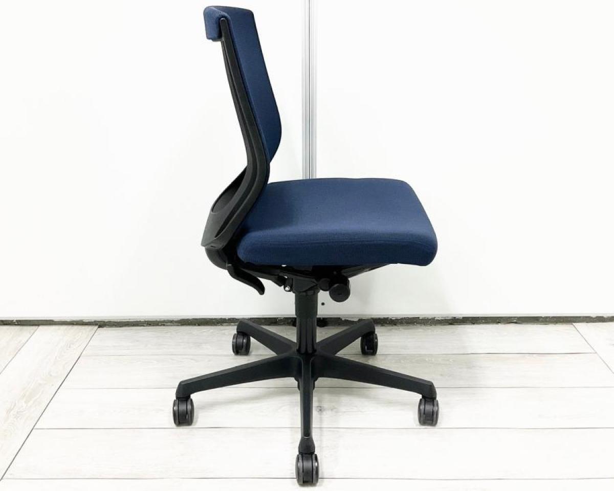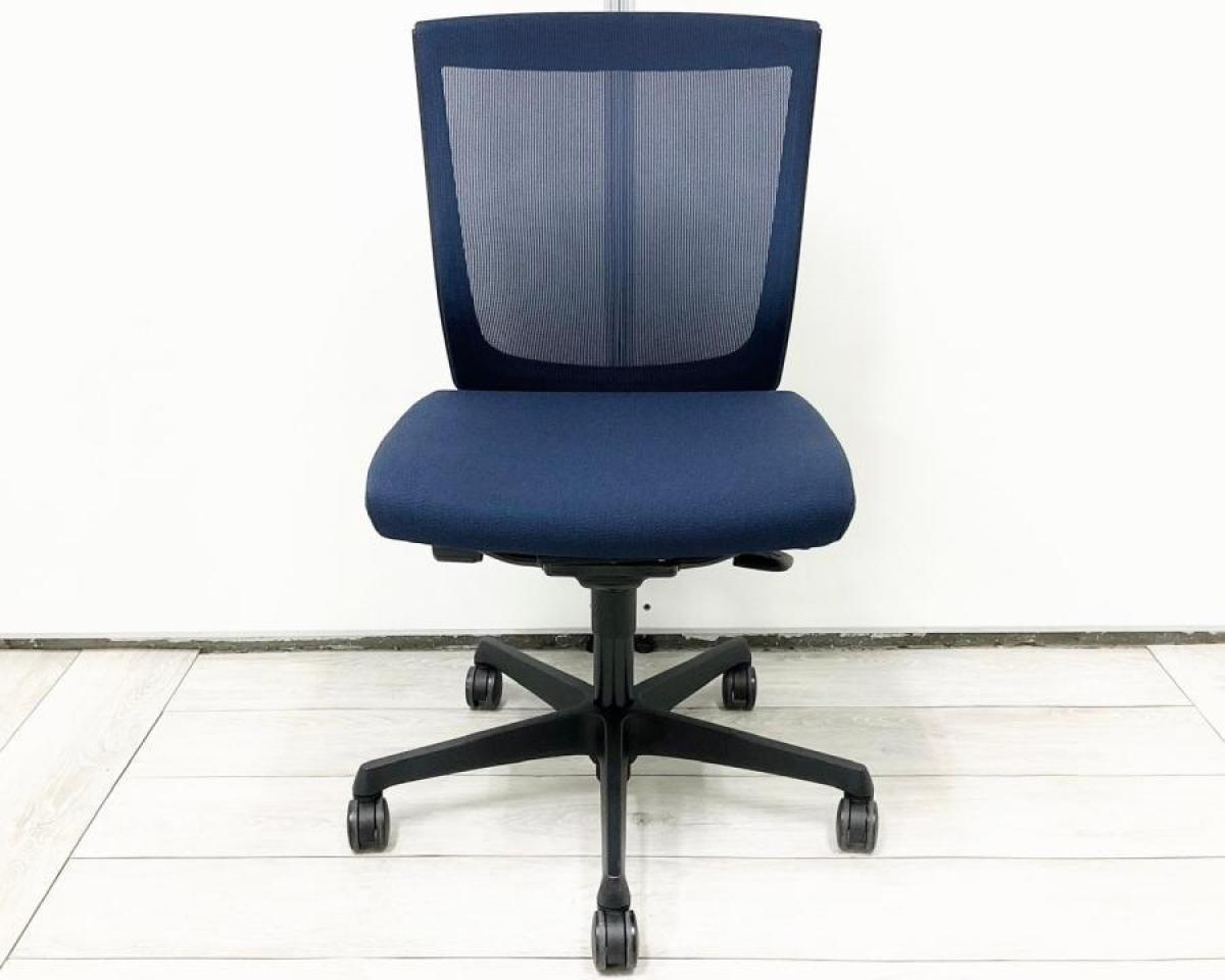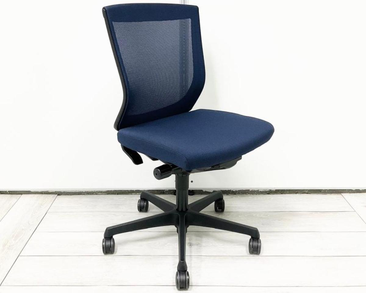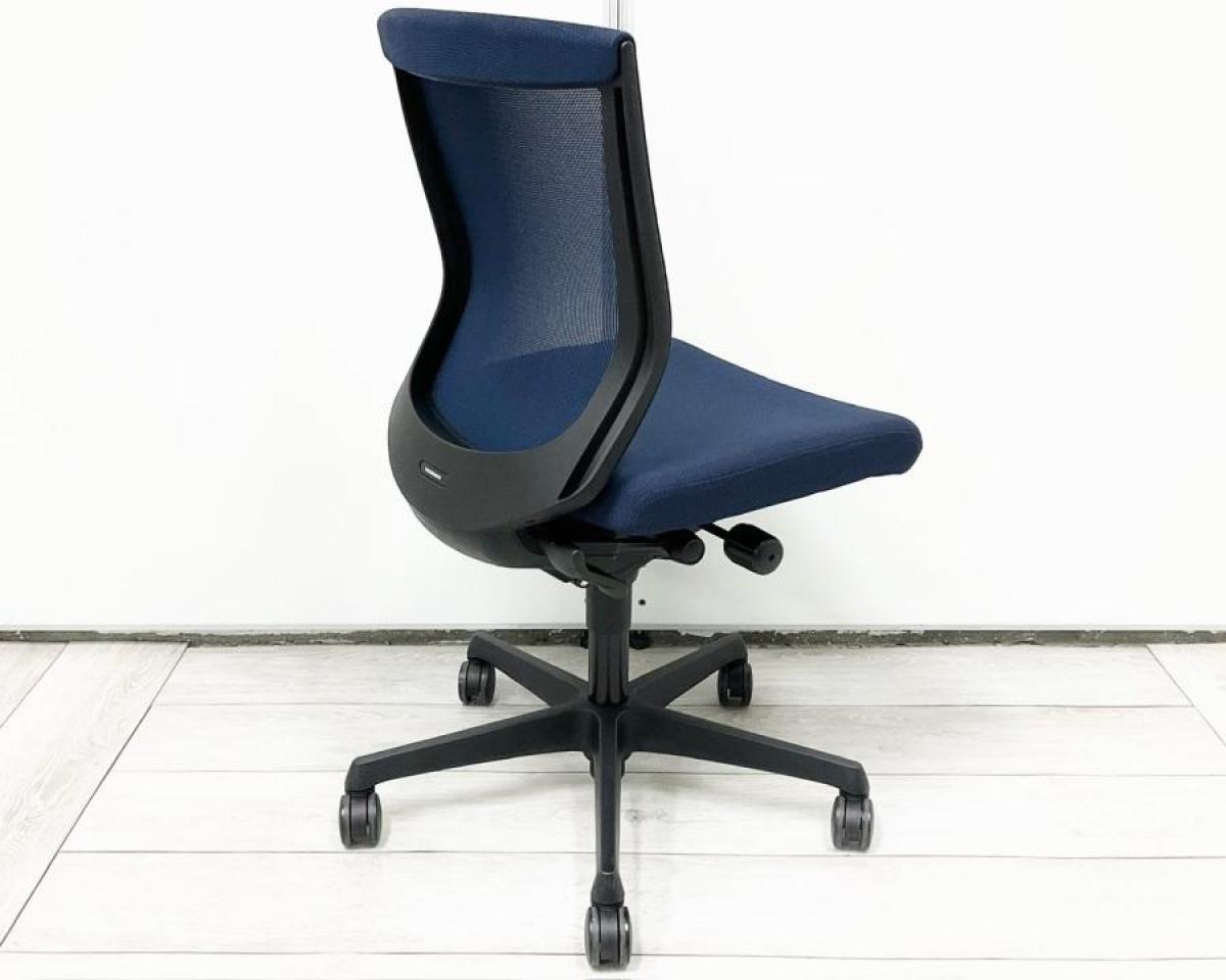 【長時間のデスクワークもランバーが快適にサポート!オフィスの定番チェア!起業や入替に!】■オカムラ(okamura)製 エスクードチェア(ESCUDO) ローバック 肘無 背面メッシュ ■ランバー無 ■ダークブルー×ブラックシェル- 春日部・越谷店