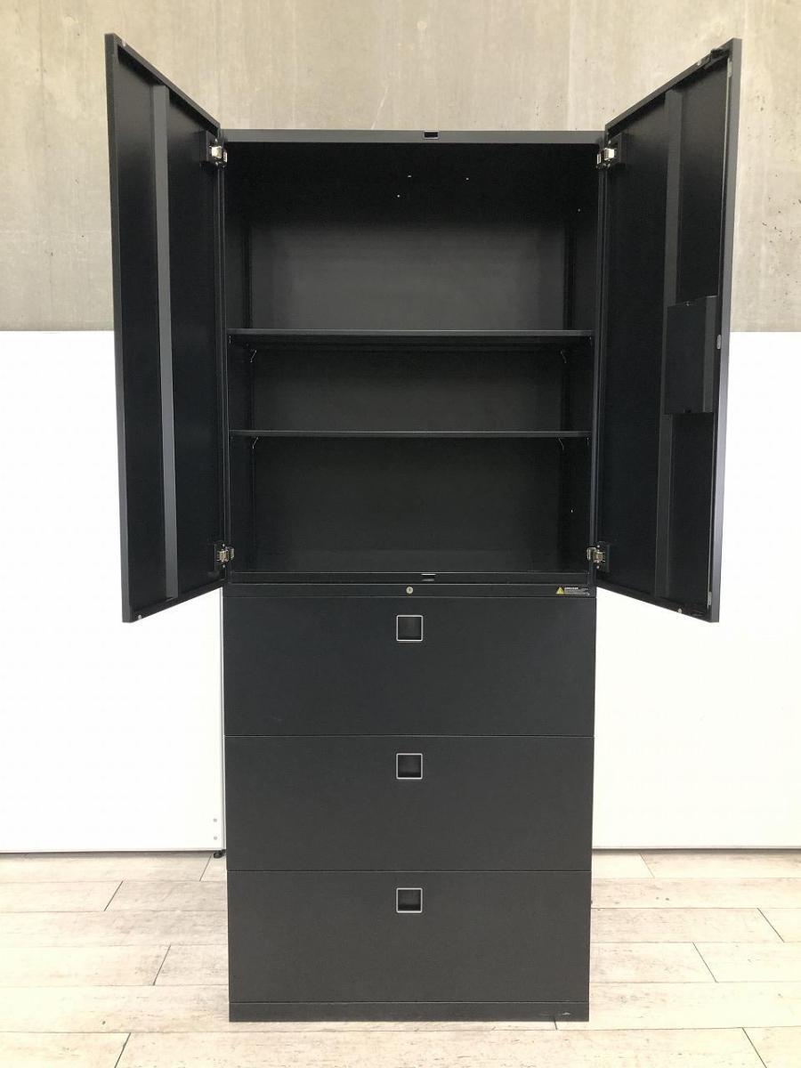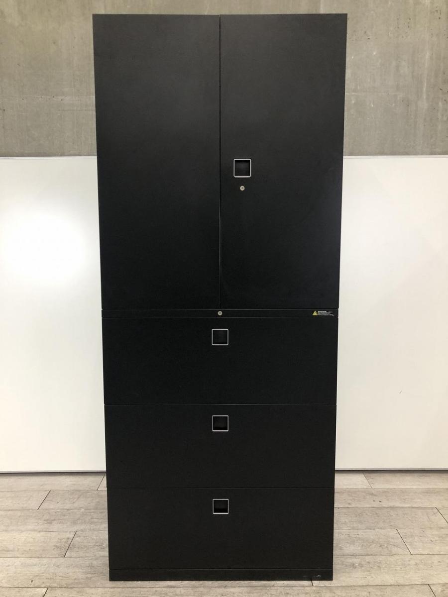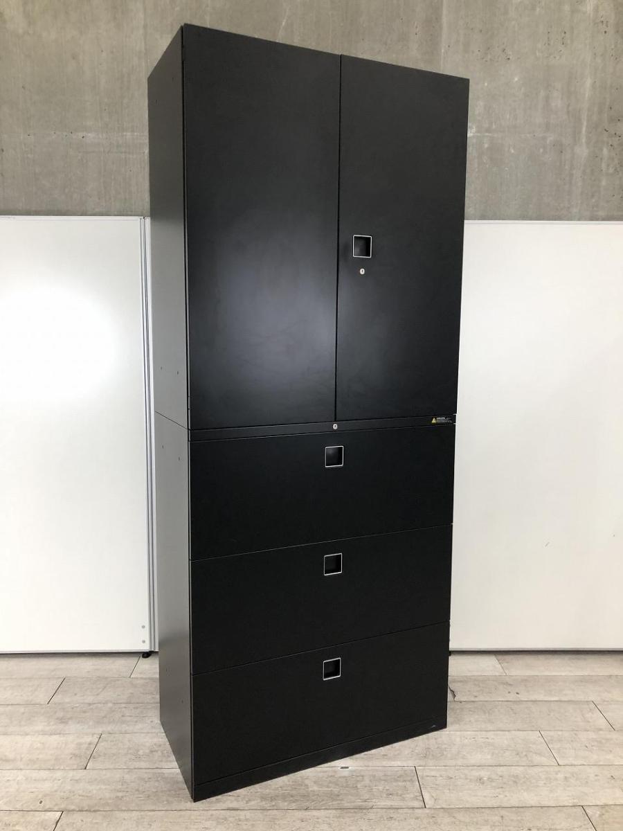 2台1セット!オカムラ製レクトラインの書庫セットが入荷!両開き+3段ラテラルの便利な組み合わせで書類をスッキリ整理/ブラック仕様の高品質スチールキャビネットで、オフィス収納をスマートに改善できます。/オススメ(おすすめ) /人気商品【弊社使用欄:A01044714 / A01044713】- 池袋店