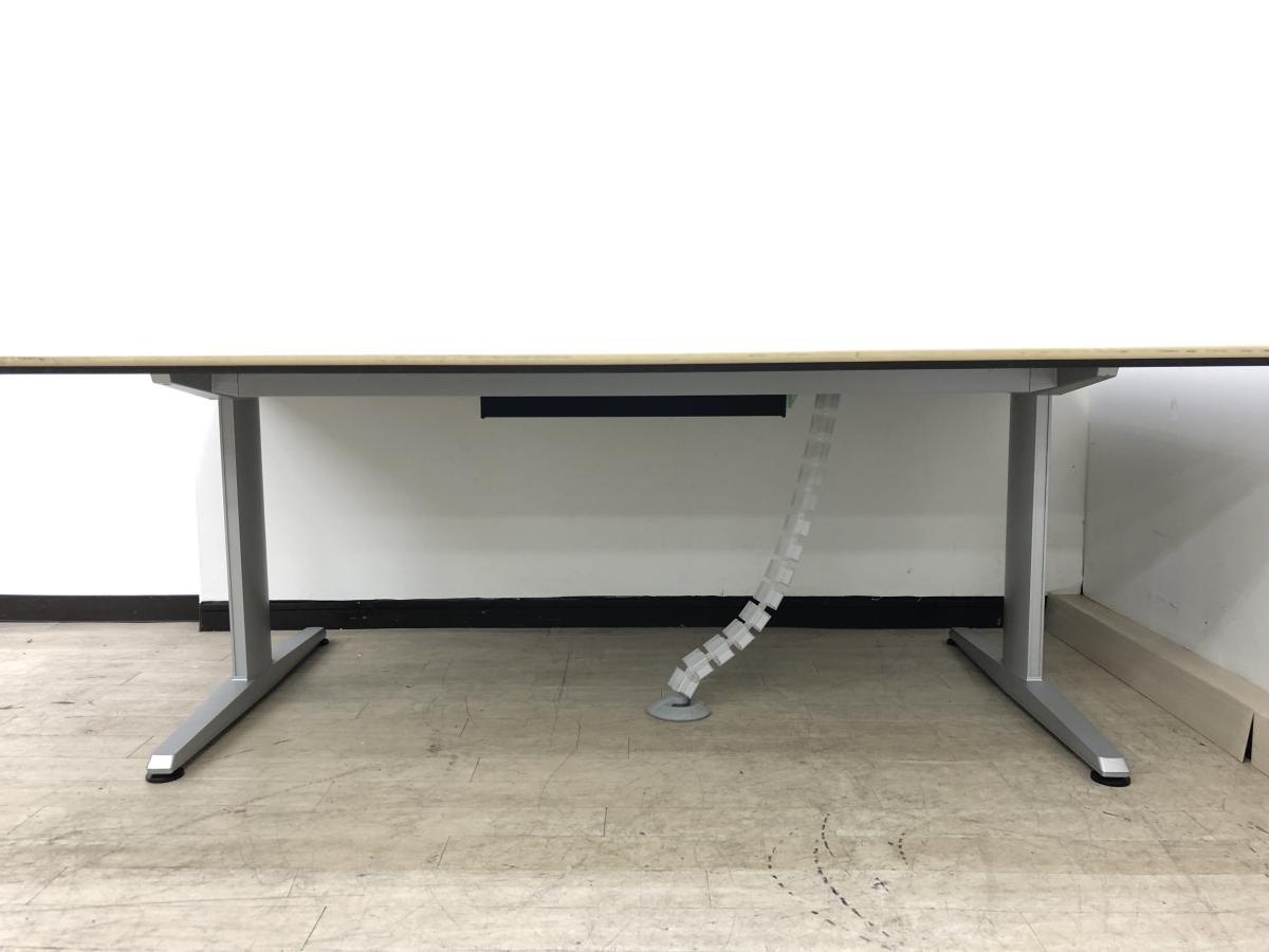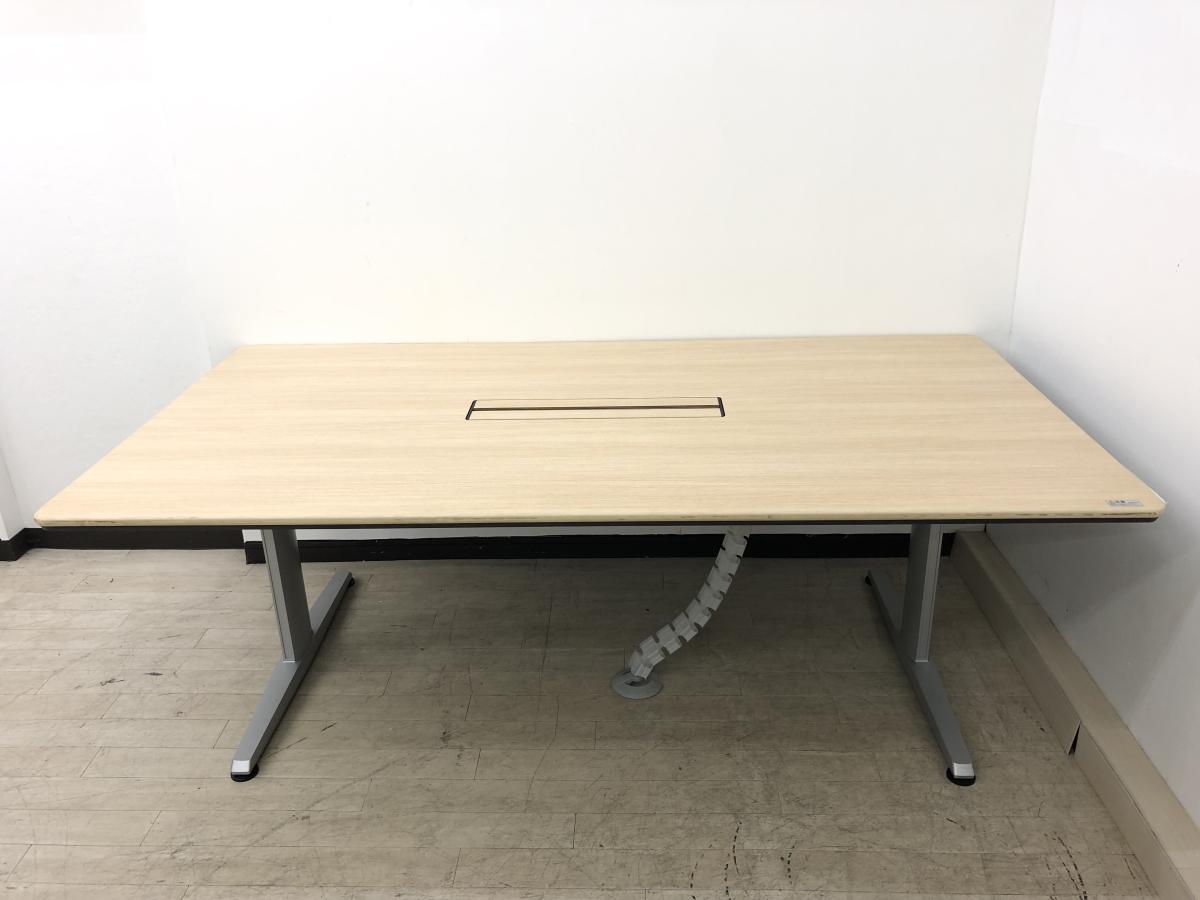 【配線ダクト付きのW2100サイズで会議シーンや商談スペースに活躍!】オカムラ製 リフティオシリーズ 大型テーブル ナチュラル 《オフィスバスターズ福岡博多店は、福岡を拠点として、日本全国へ中古オフィス用品・オフィス家具を提供しております》- 福岡博多店