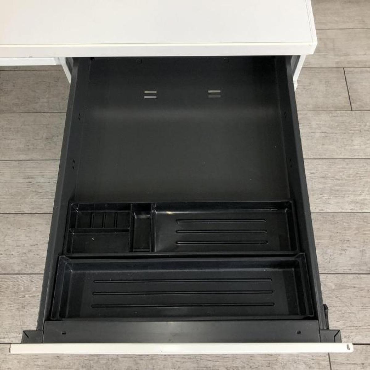 【在庫入替セール】オカムラ アドバンス ホワイト 片袖机 引き出し4段 より収納したい方にうってつけの仕様 鍵付き シリンダー錠 ※天板裏の薄引き出しは実物には付属していません