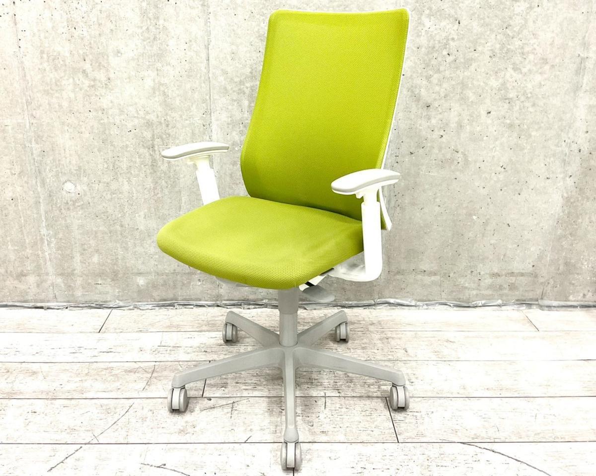 【在庫入替セール品】【背中を立体的に包み込む!シルフィの座り心地を低コストで再現!】■オカムラ(okamura)製 フルーエントチェア 肘付ハイバック 背面メッシュ ■可動肘付き ■グリーン
