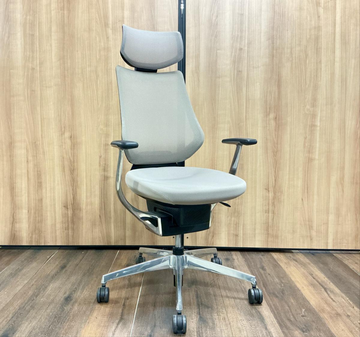 【新品ヘッドレスト付き!限定1脚!】■コクヨ(KOKUYO)製 イングチェア(ing) 肘付き ハイバック ■グレー ■背面メッシュタイプ ■固定肘【ご自宅用にも!】【AD】