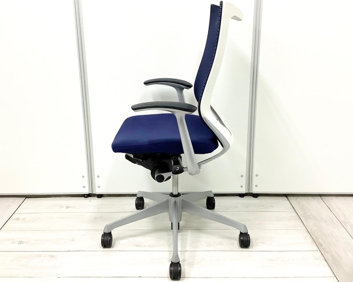 【人間工学に基づいた快適設計で身体にやさしくフィット!】■オカムラ製 バロンチェア 可動肘付 ダークブルー ホワイトシェル ■硬めのクッションが大人気!国産メッシュチェアの代表格!