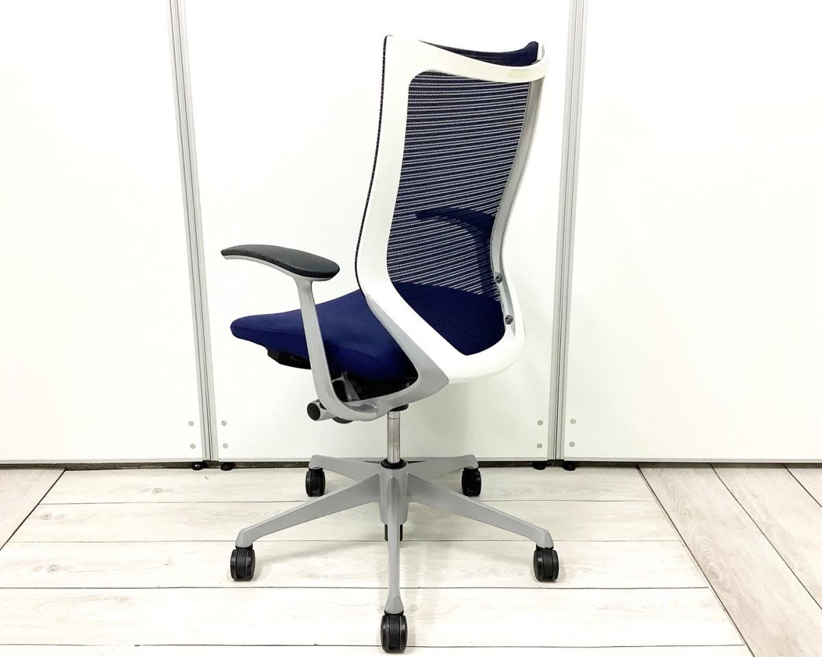 【新品ヘッドレスト付き】オカムラ/バロン/ブルー×ホワイト/可動肘/座面クッション【AD】