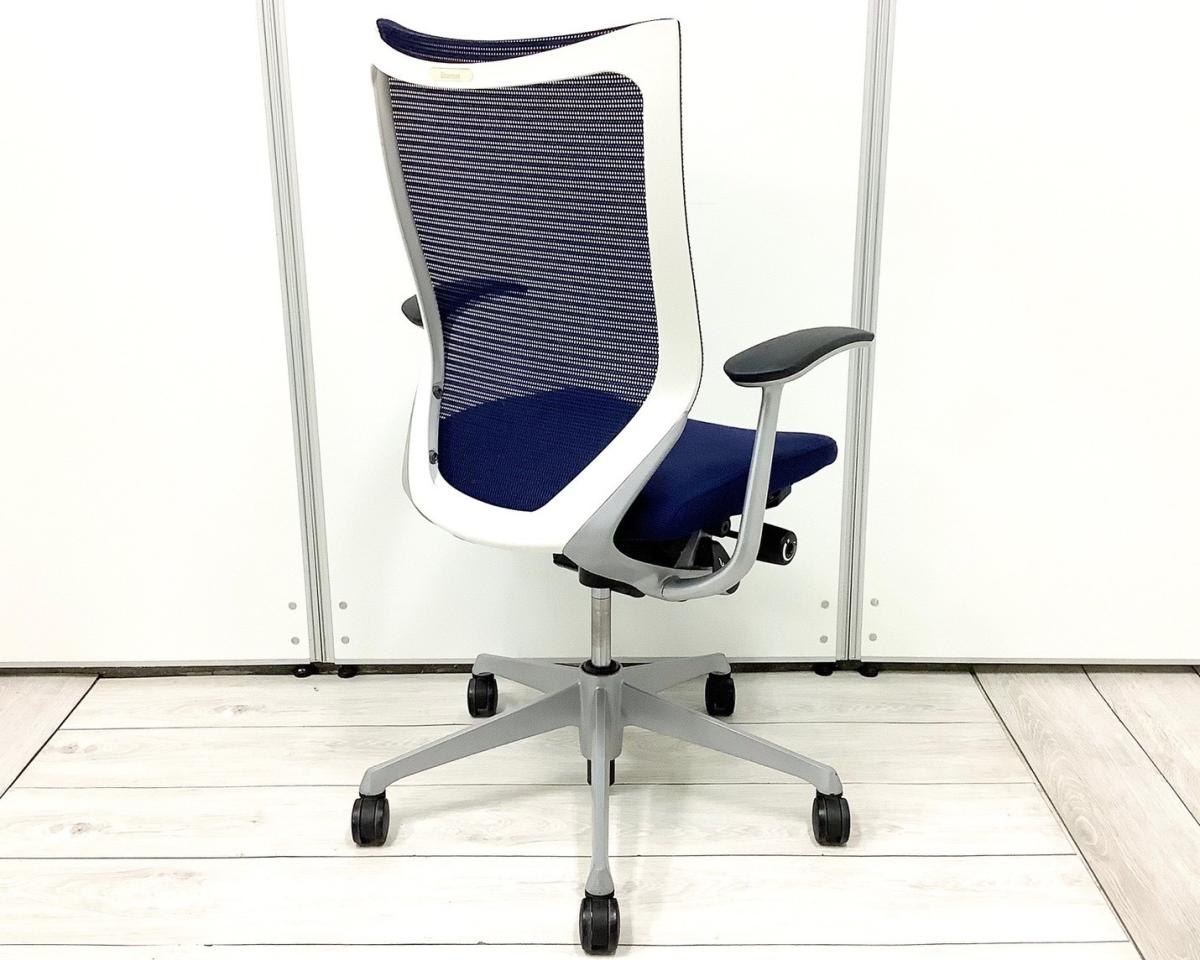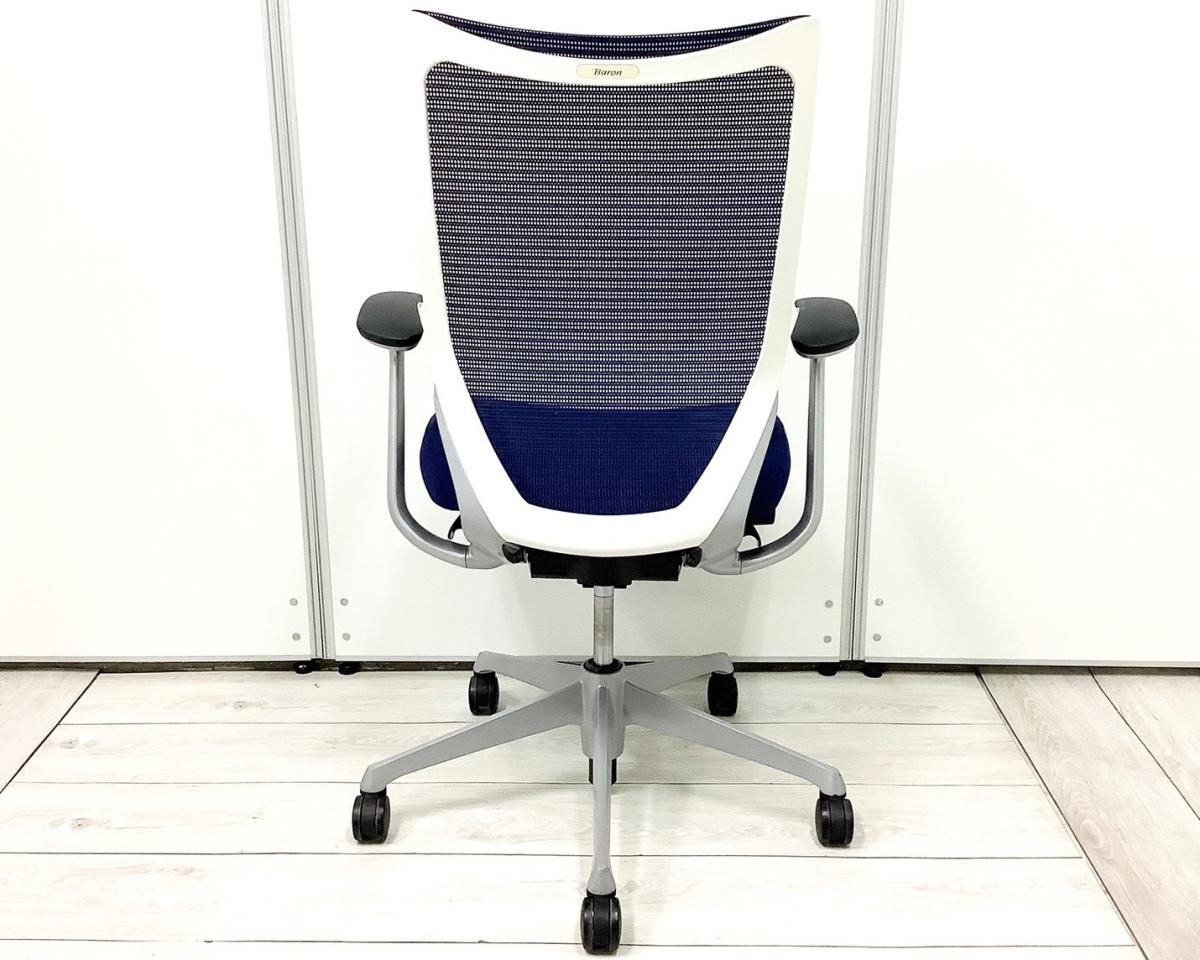 【限定1脚】【オフィスの執務室、会議室におすすめ!】■オカムラ(okamura)製 バロン(Baron)チェア 肘付き ハイバック 背面メッシュ ■可動肘 ■ダークブルー × ホワイトシェル【硬めの座面が大人気!国産メッシュチェアの代表格!】【状態良好品!】