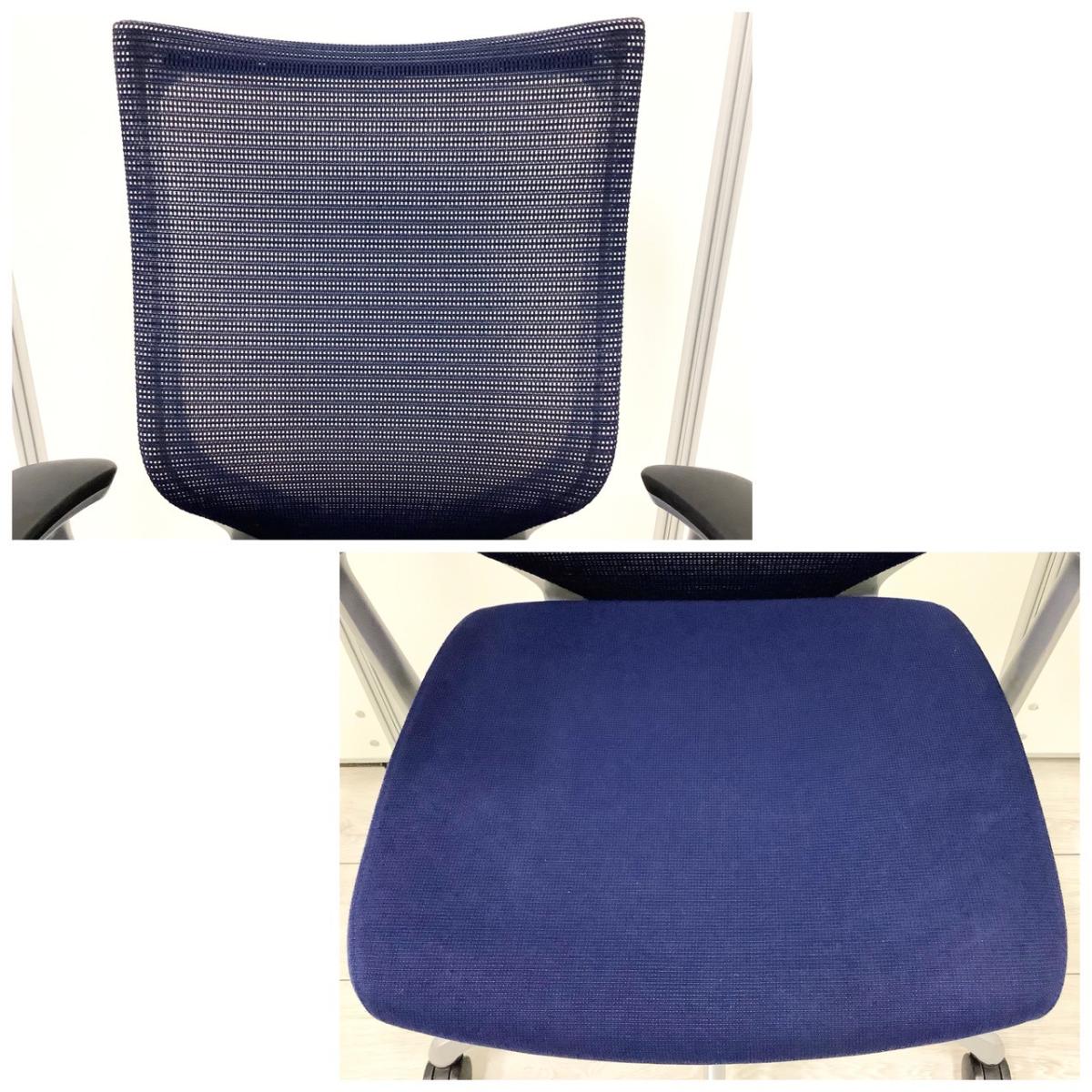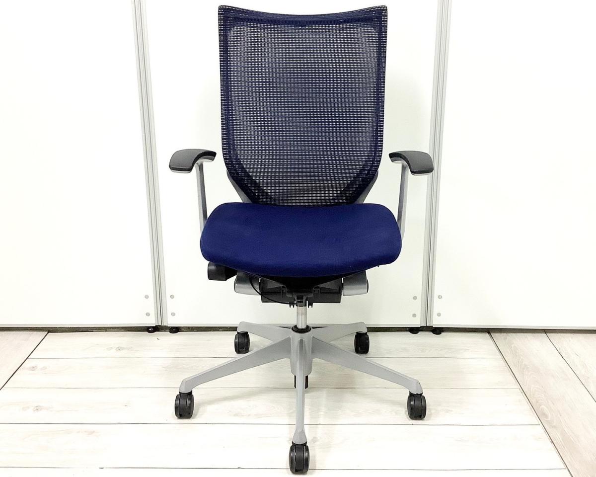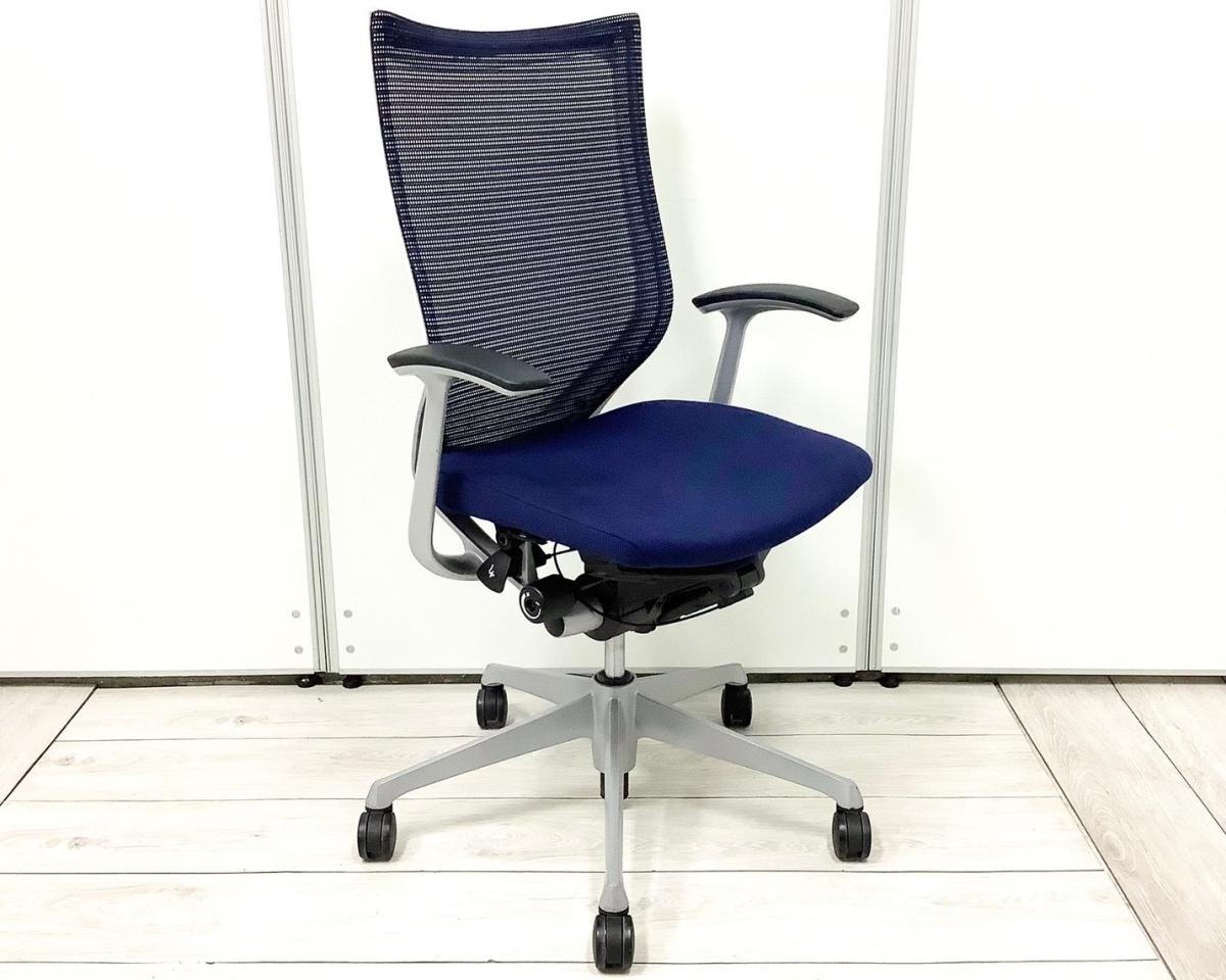 定番/大人気/チェアといえばこれ ■オカムラ(okamura)製 バロン(Baron)チェア 肘付き ハイバック 背面メッシュ ■可動肘 ■ダークブルー × ホワイトシェル