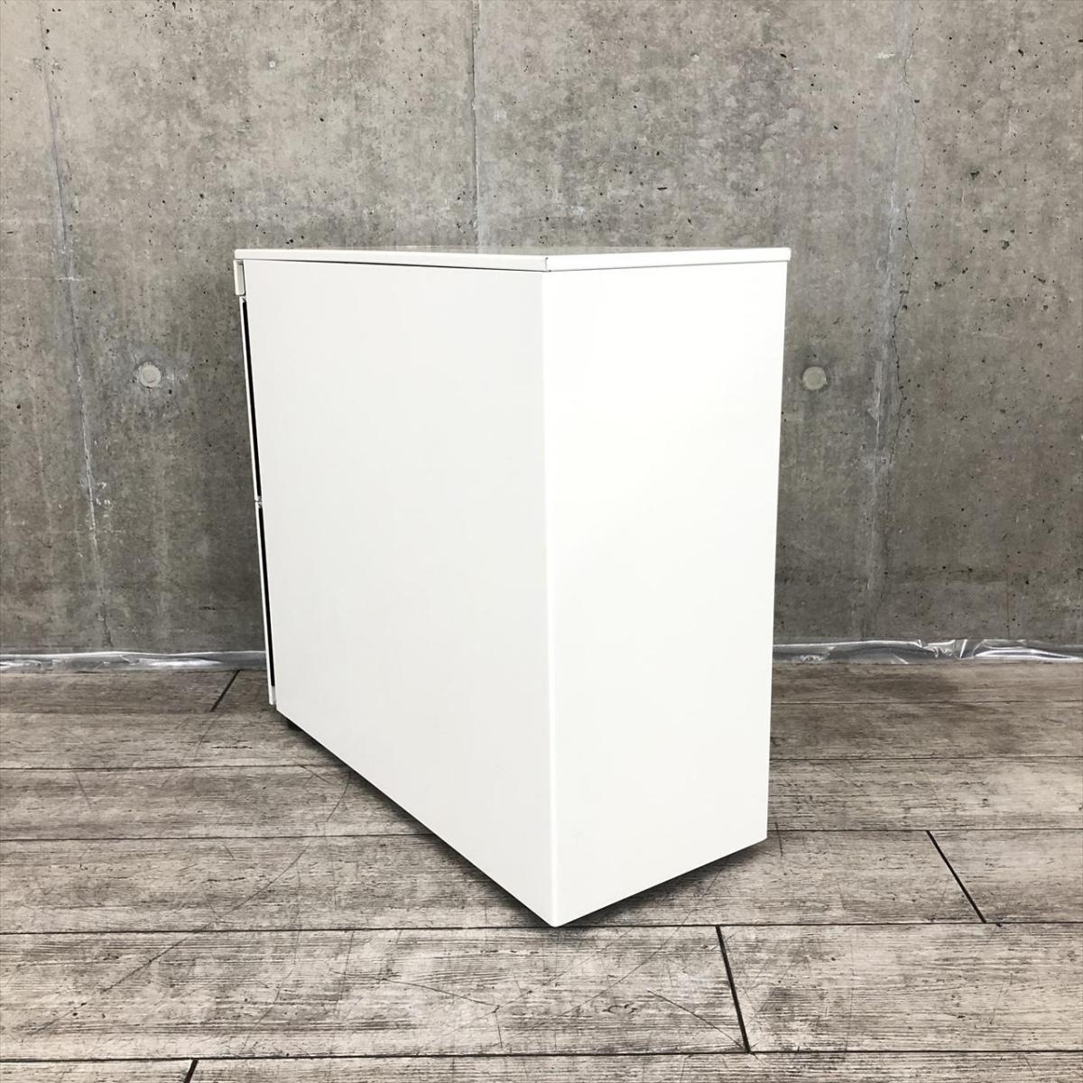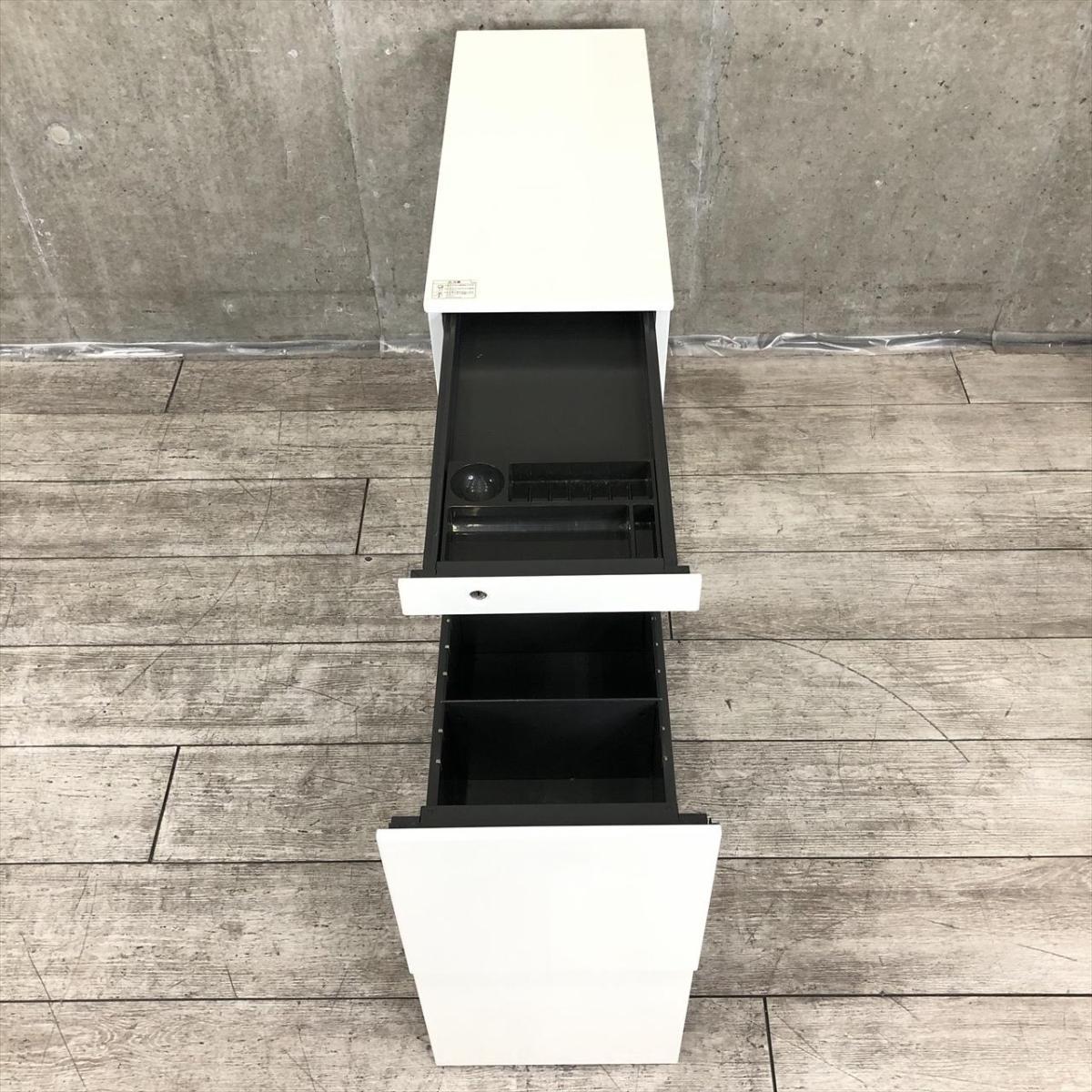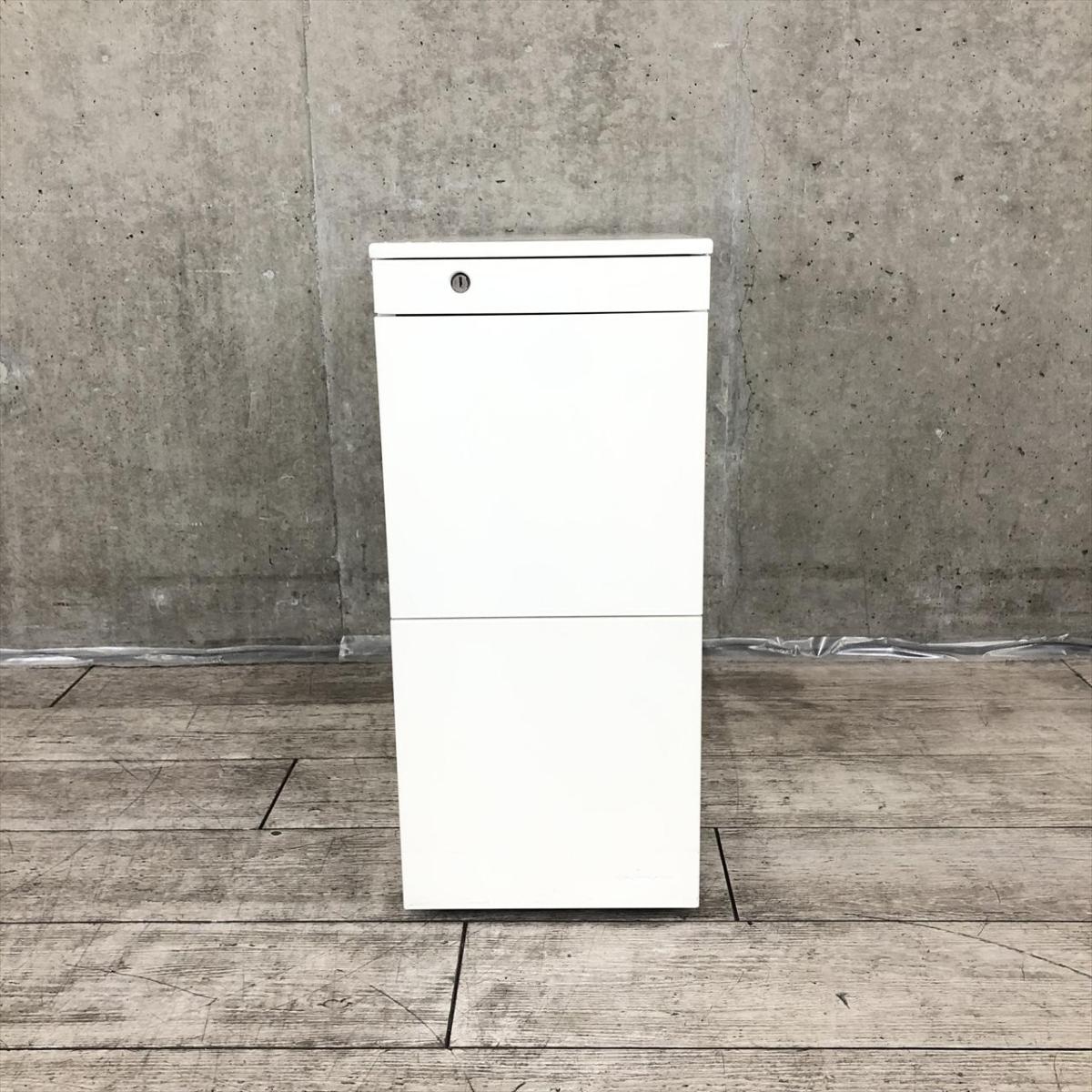 ☆W290mm!【スリムで省スペース設計!】■オカムラ製 3段ワゴン W290×D700×H645㎜ ホワイト ※前方アジャスター/後方キャスタータイプ ■正面に取っ手が無いフラットなデザイン!【スリムワゴン】【ハイワゴン】【ABW】- 川崎店