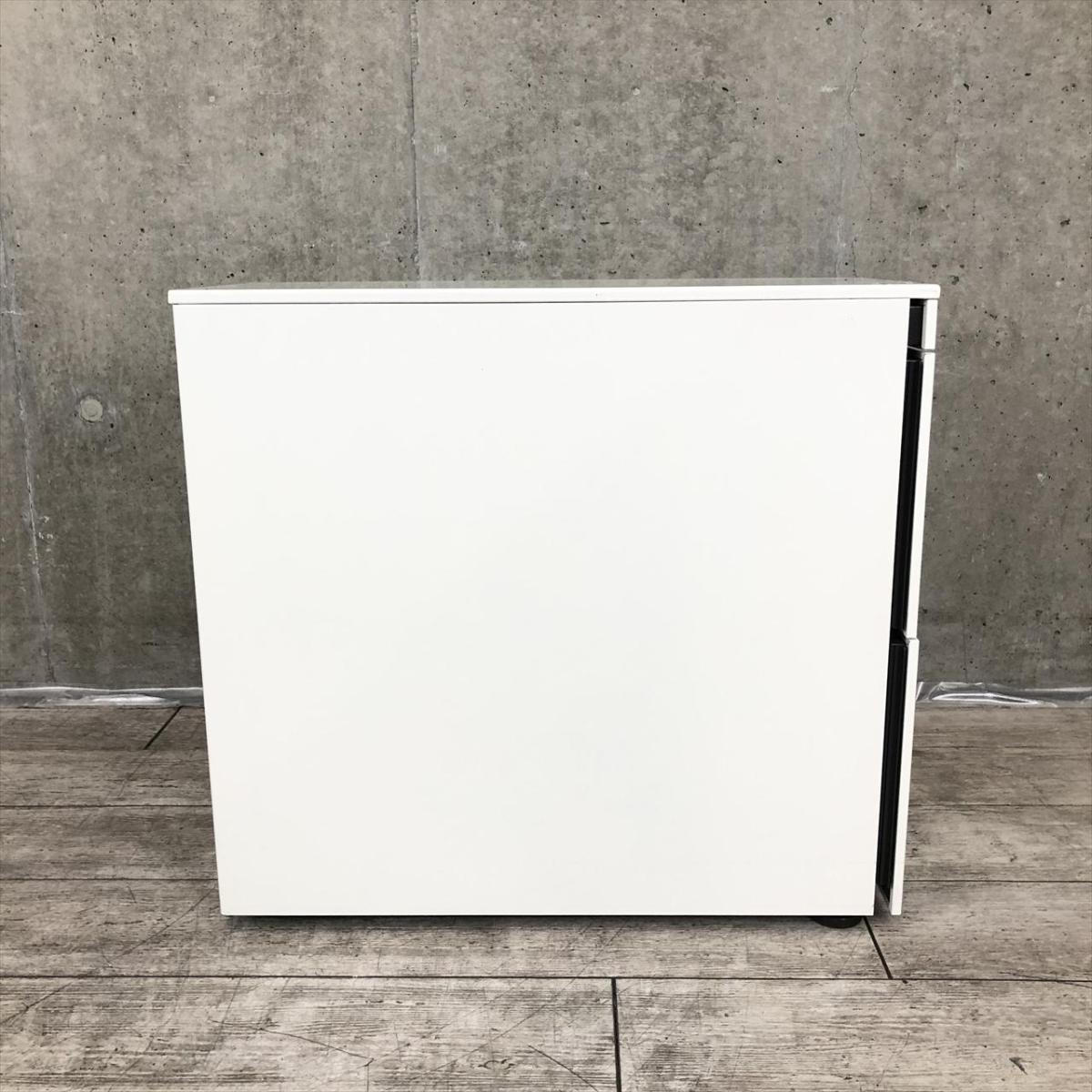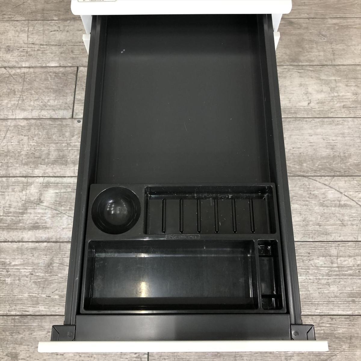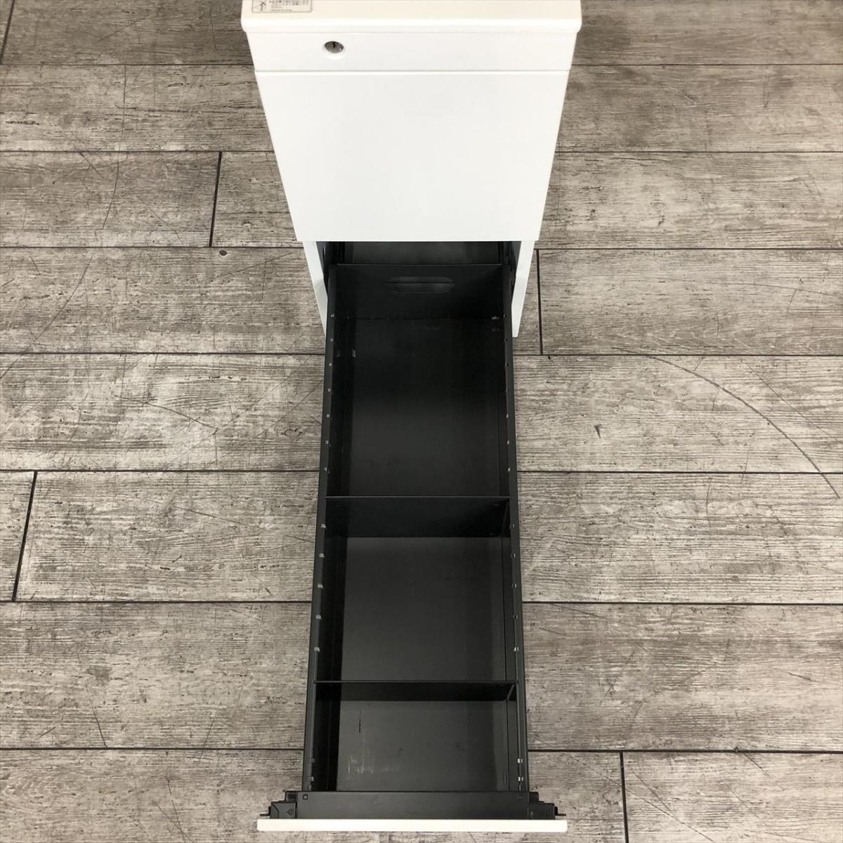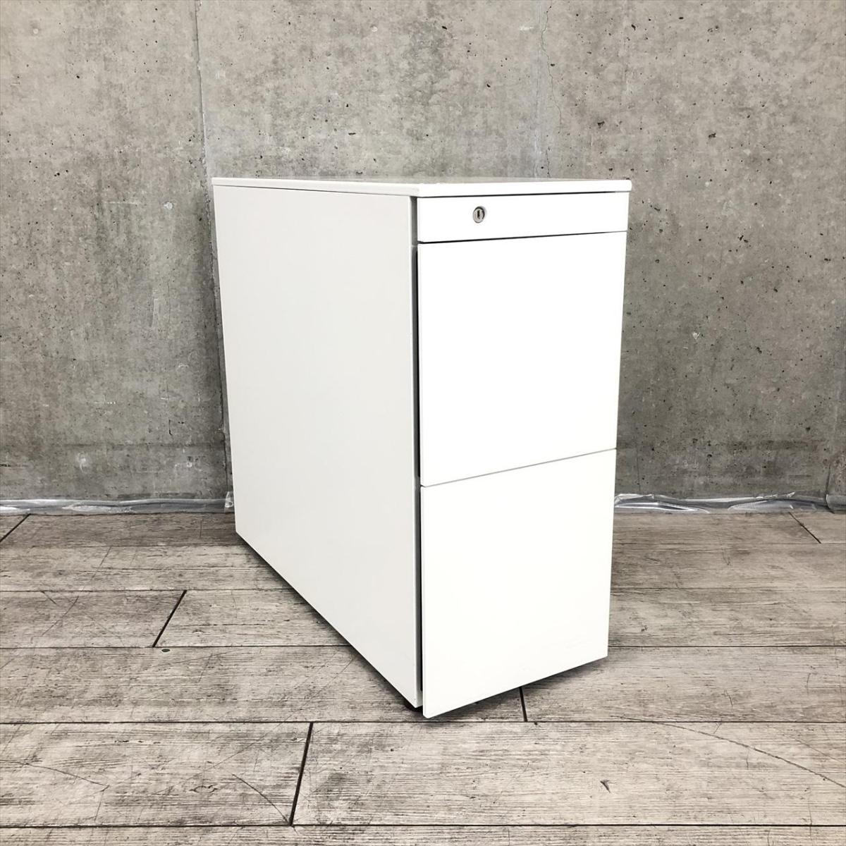 ☆W290mm!【スリムで省スペース設計!】■オカムラ製 3段ワゴン W290×D700×H645㎜ ホワイト ※前方アジャスター/後方キャスタータイプ ■正面に取っ手が無いフラットなデザイン!【スリムワゴン】【ハイワゴン】【ABW】- 川崎店